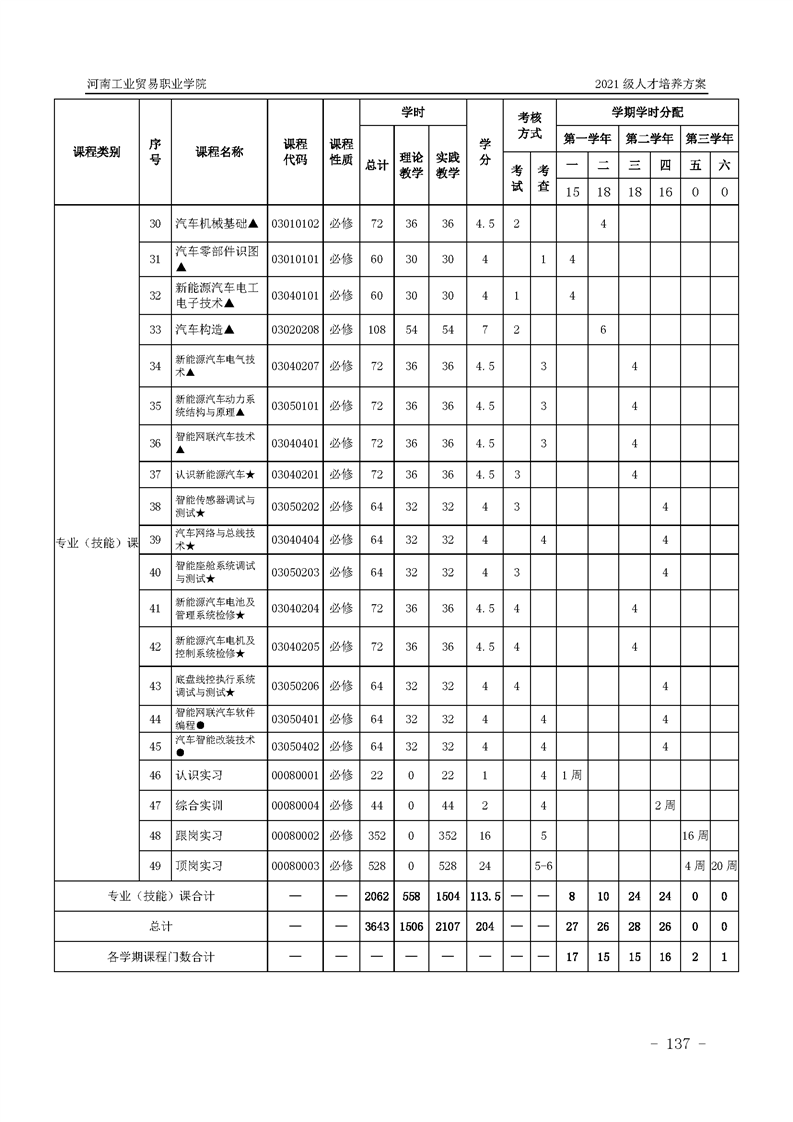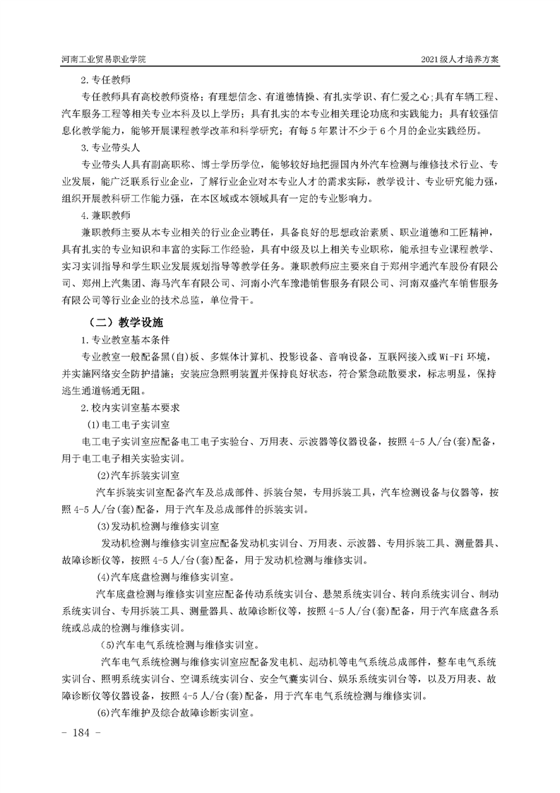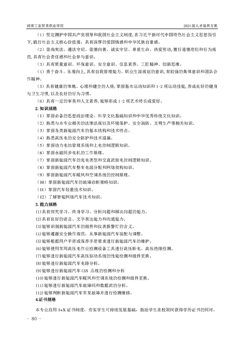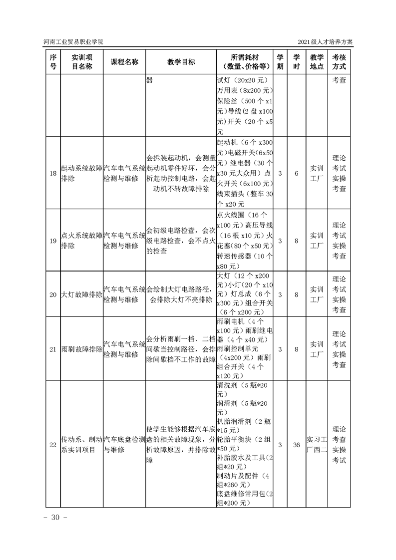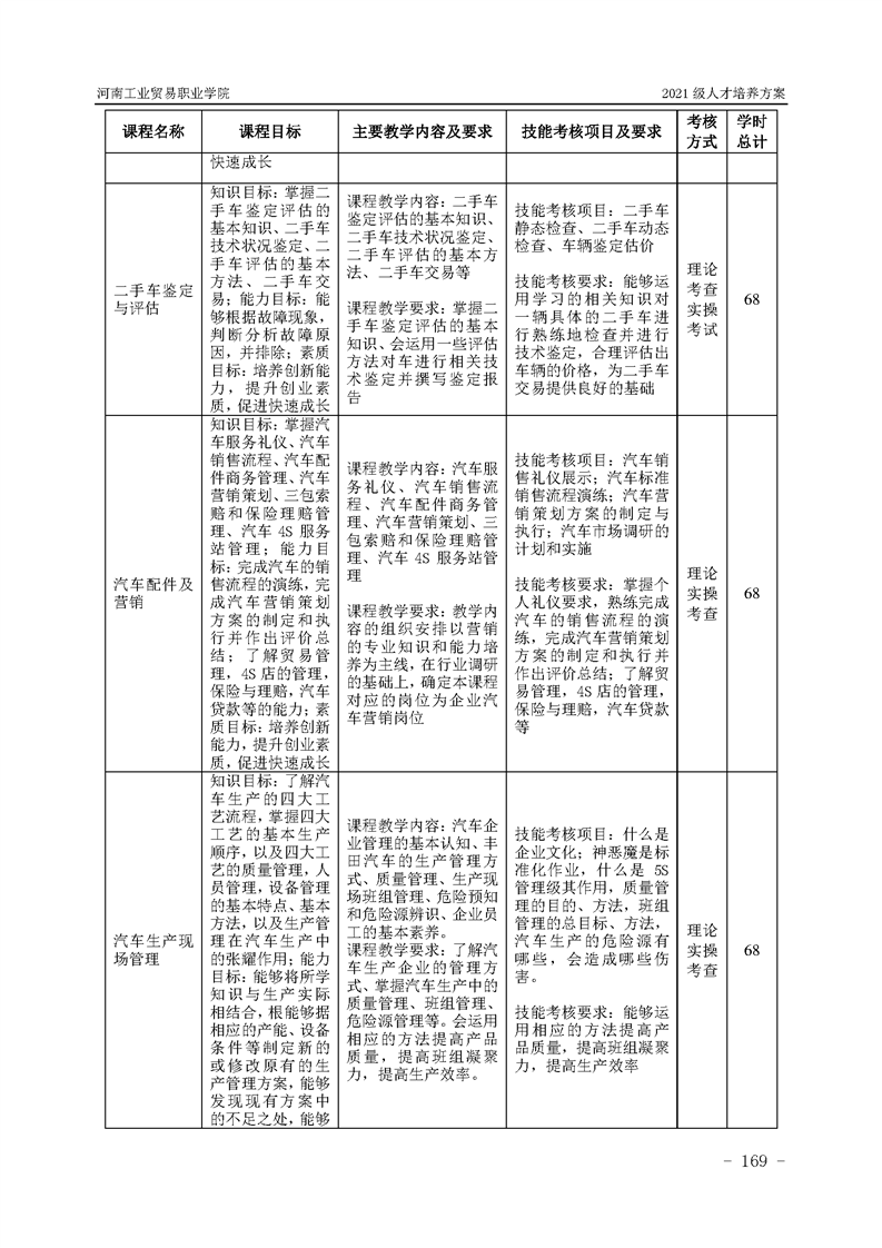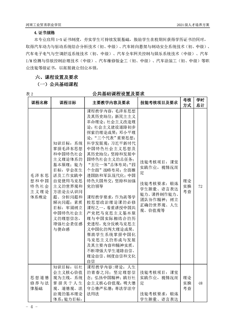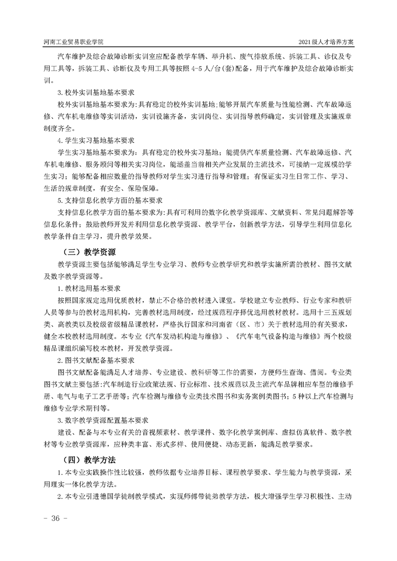 3.河南工業貿易職業學院2021級汽車工程學院人才培養方案