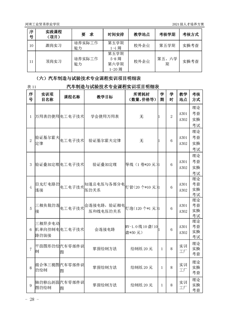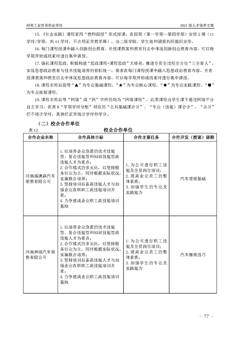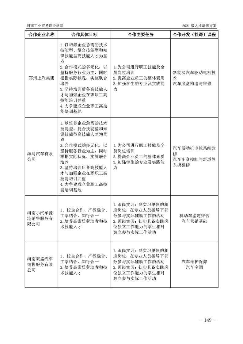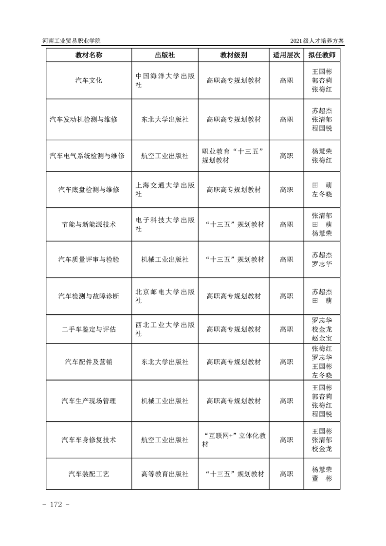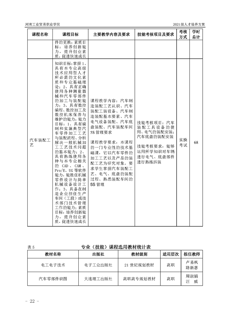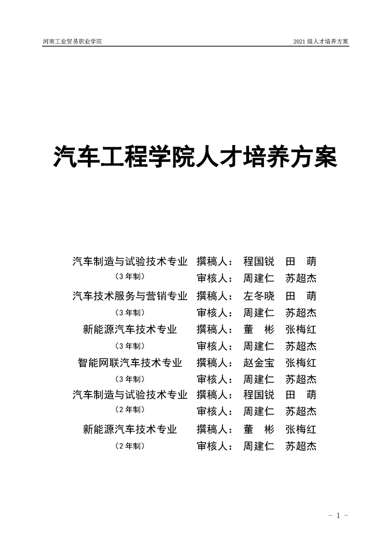 3.河南工業貿易職業學院2021級汽車工程學院人才培養方案