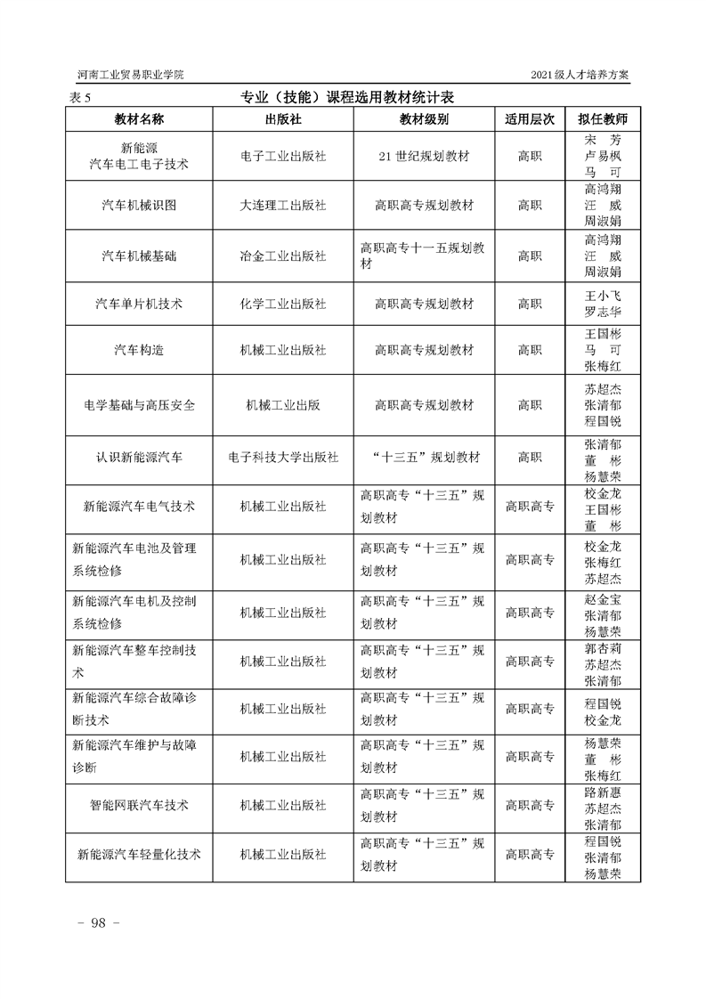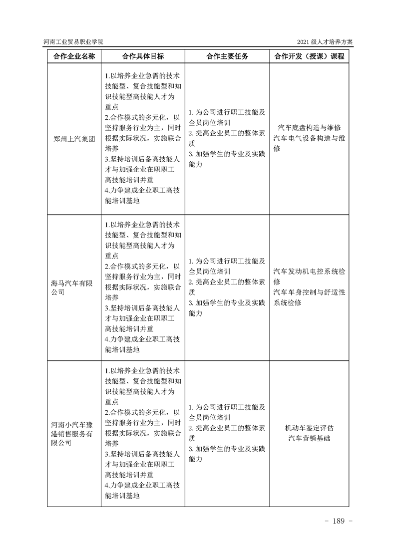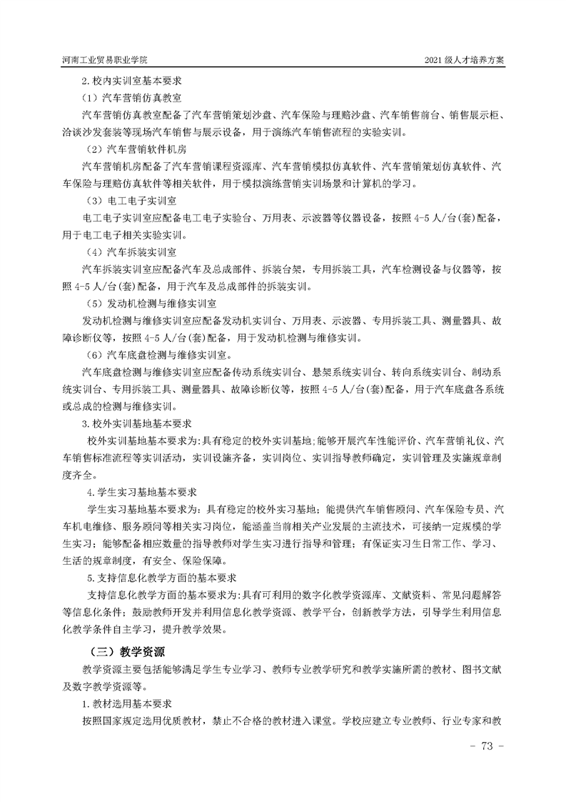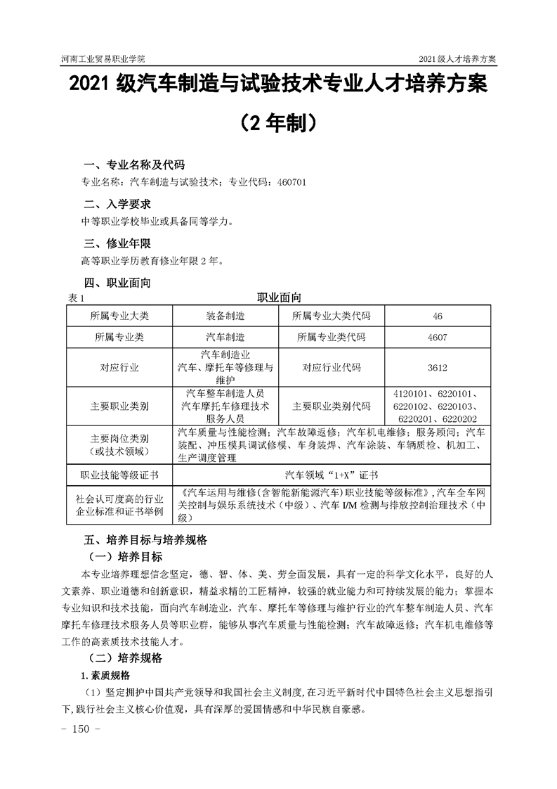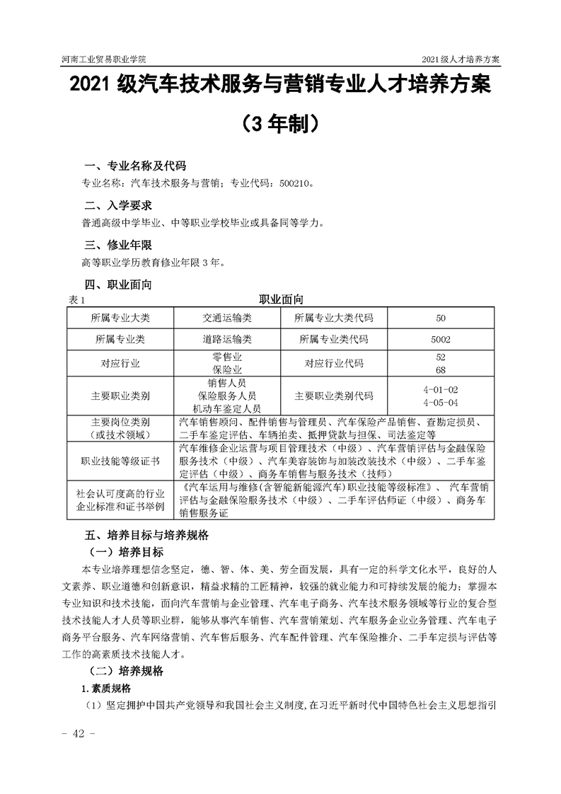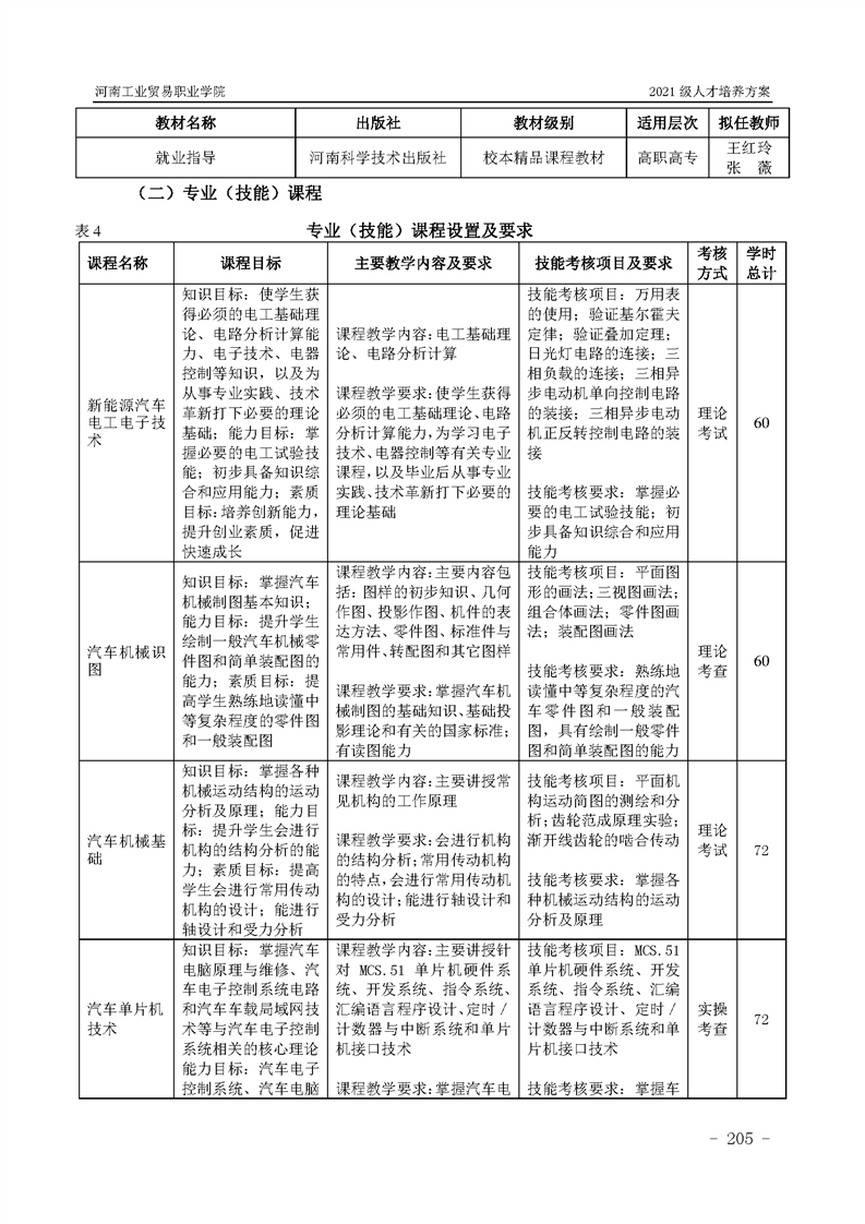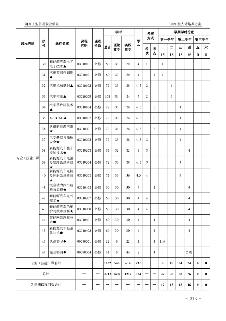 3.河南工業貿易職業學院2021級汽車工程學院人才培養方案