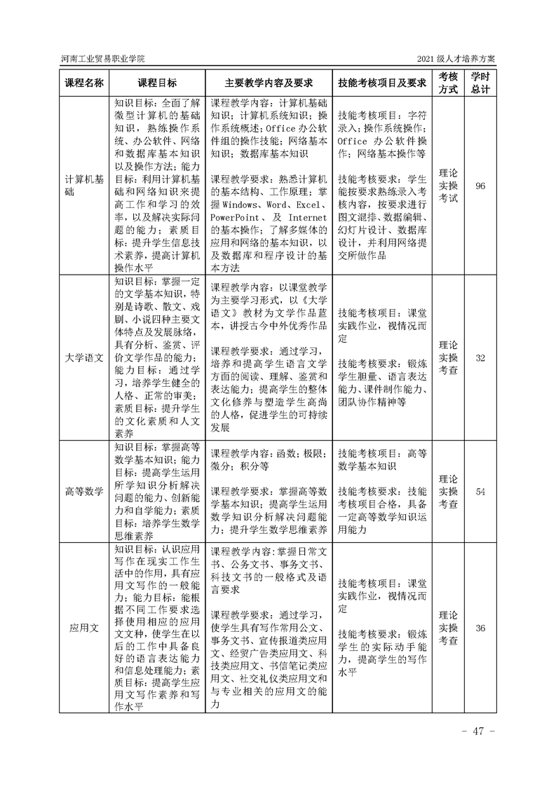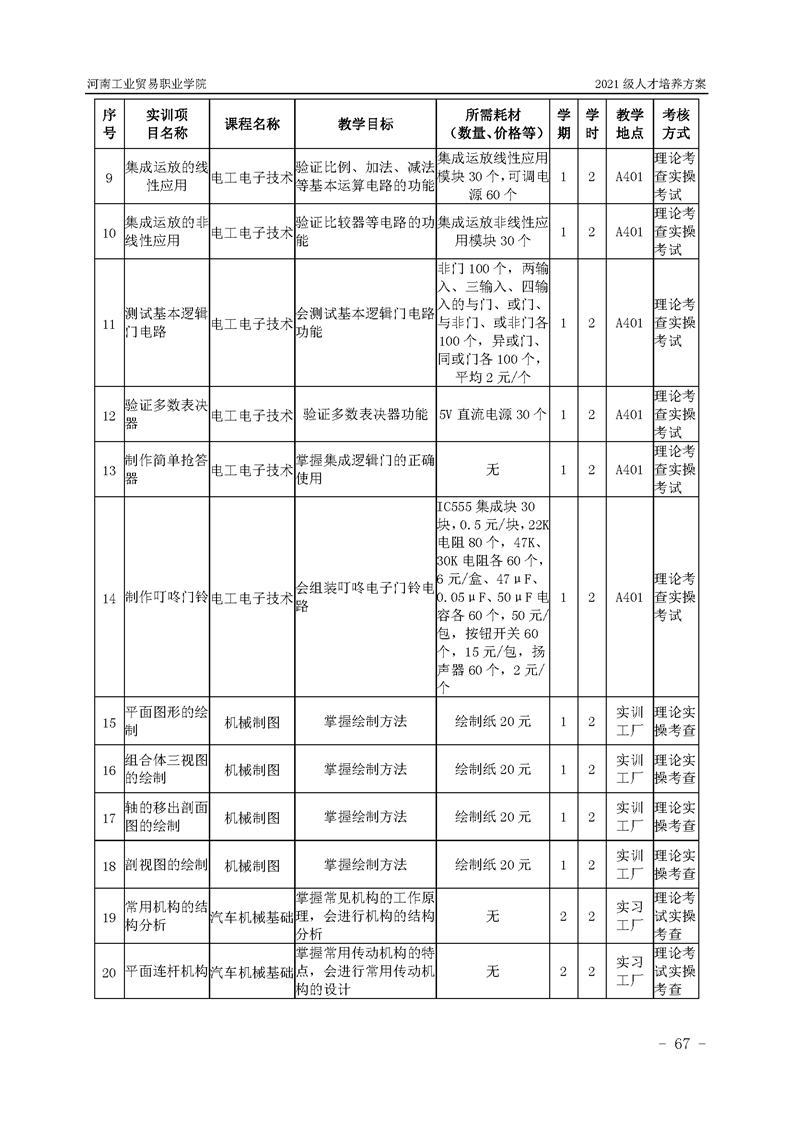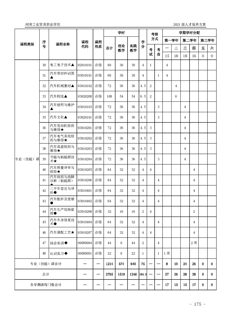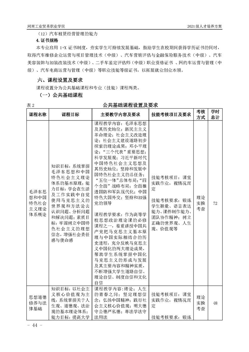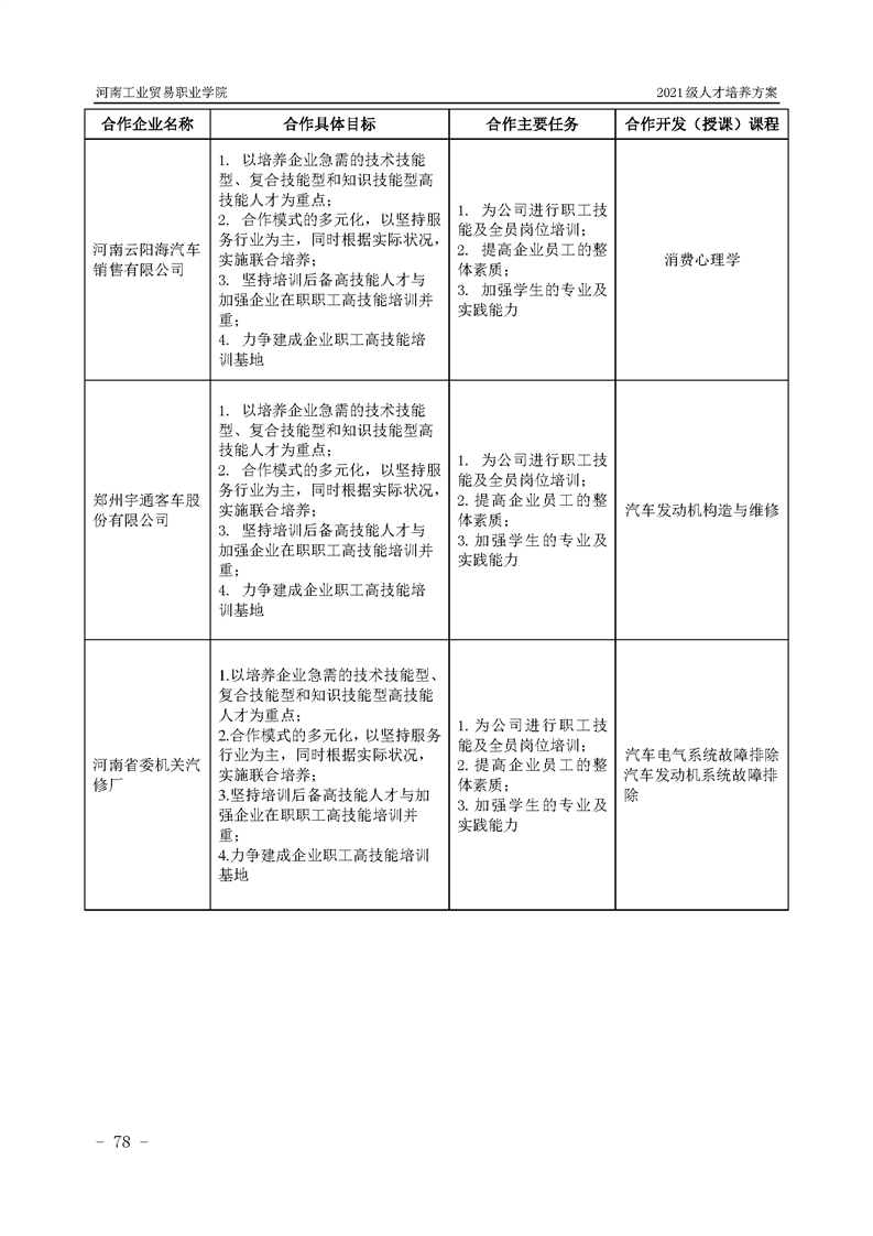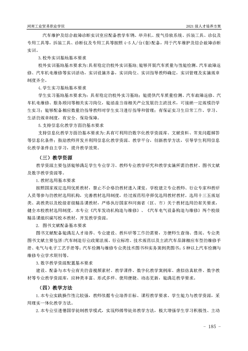 3.河南工業貿易職業學院2021級汽車工程學院人才培養方案