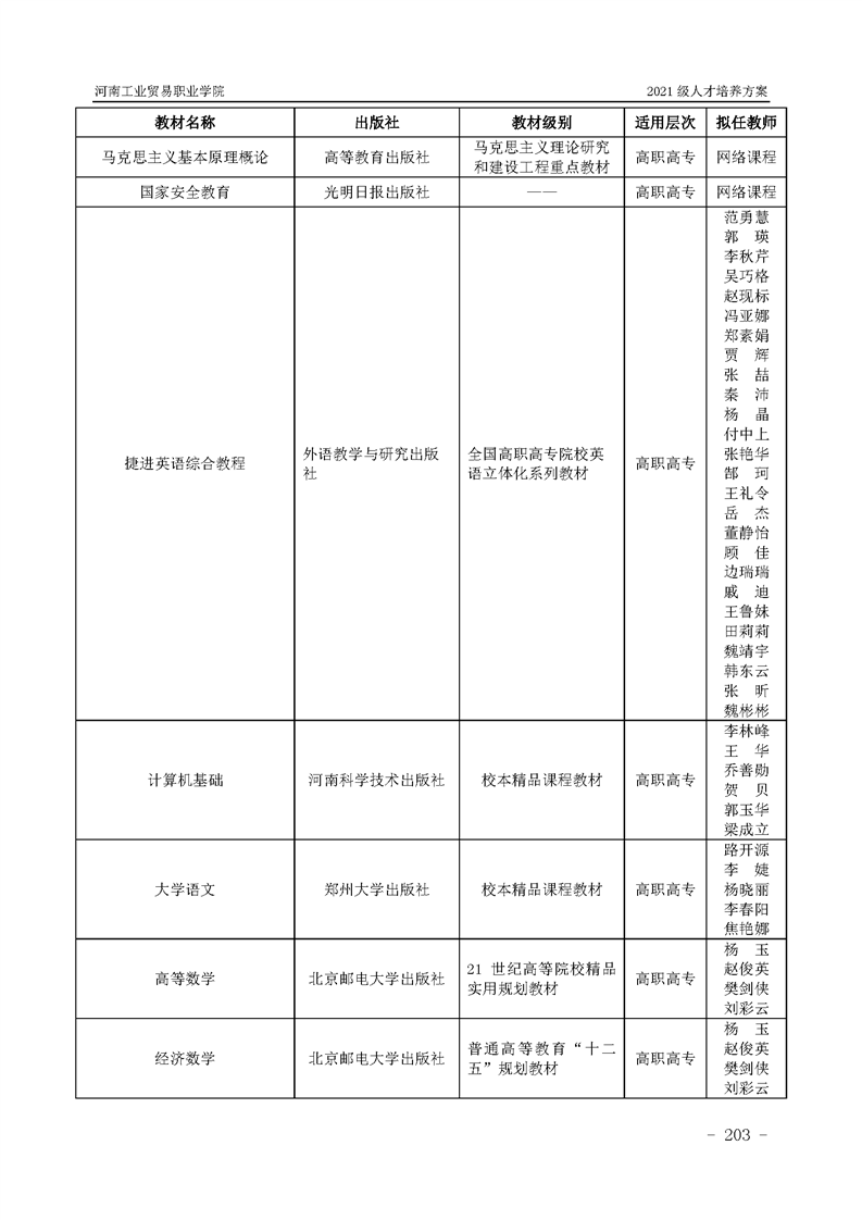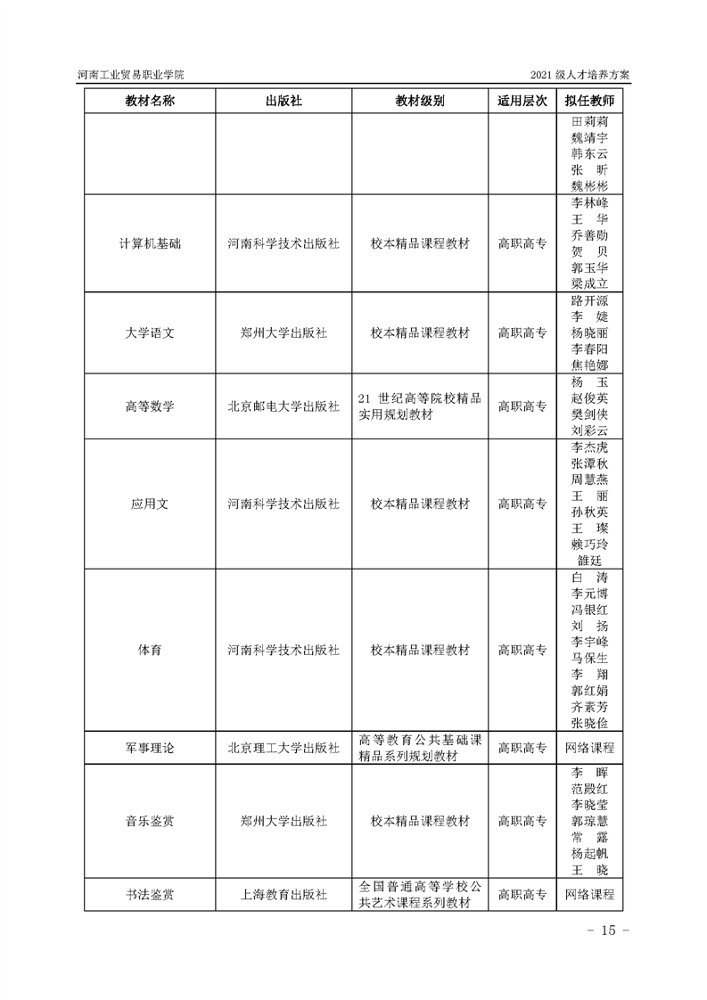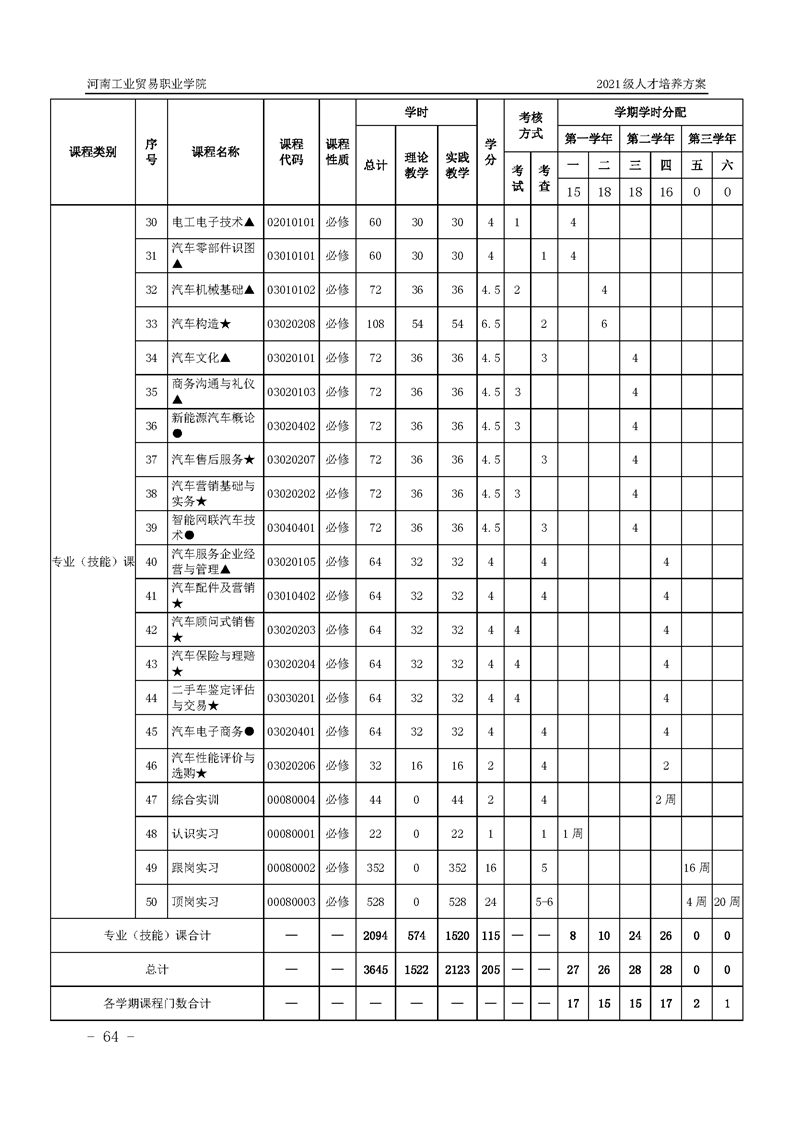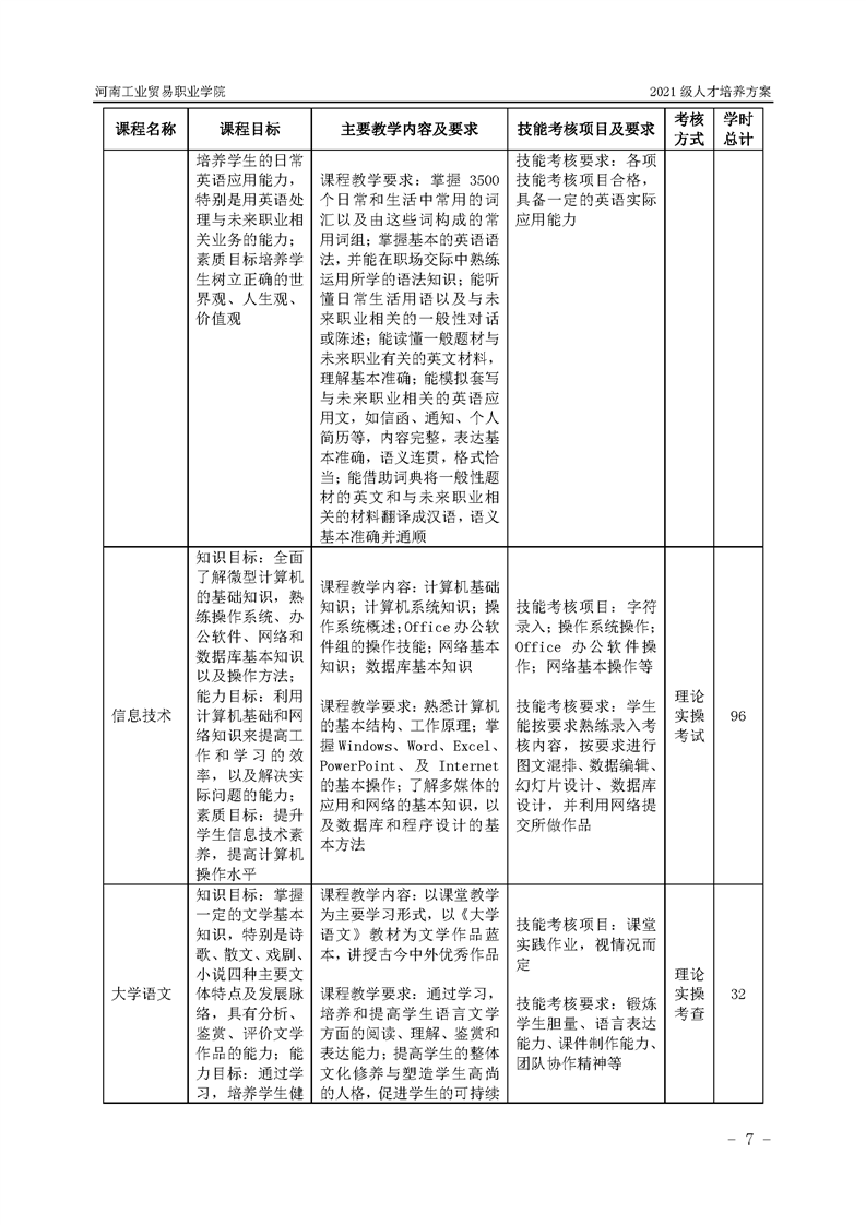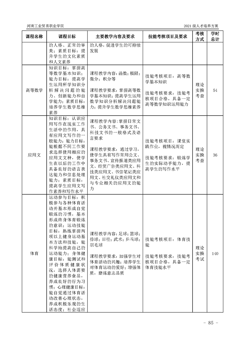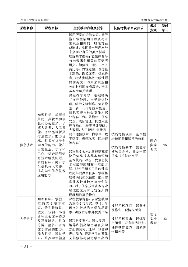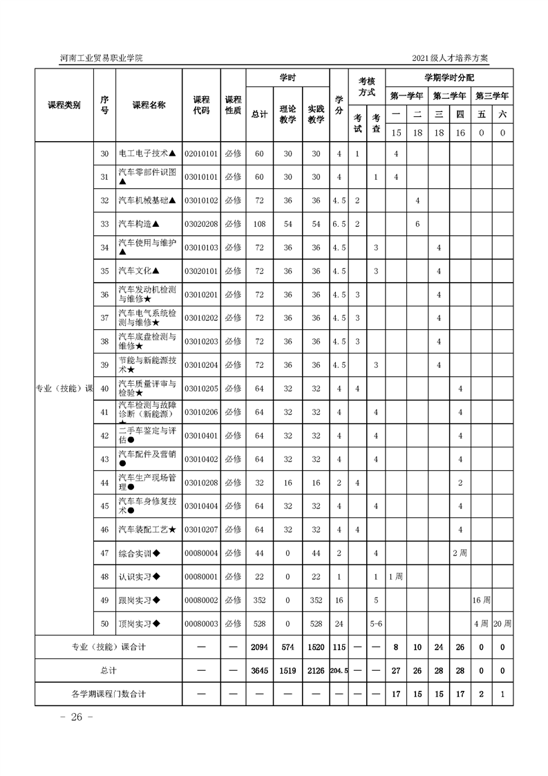 3.河南工業貿易職業學院2021級汽車工程學院人才培養方案