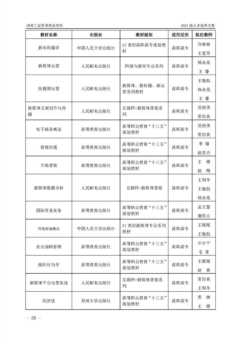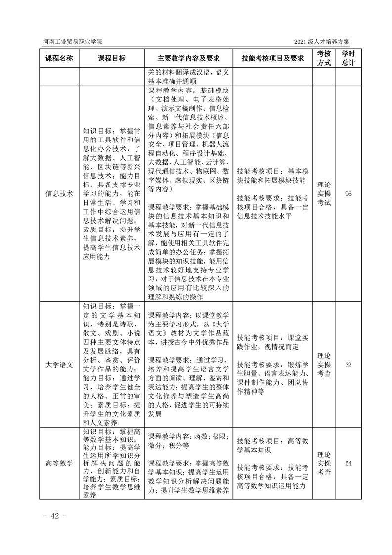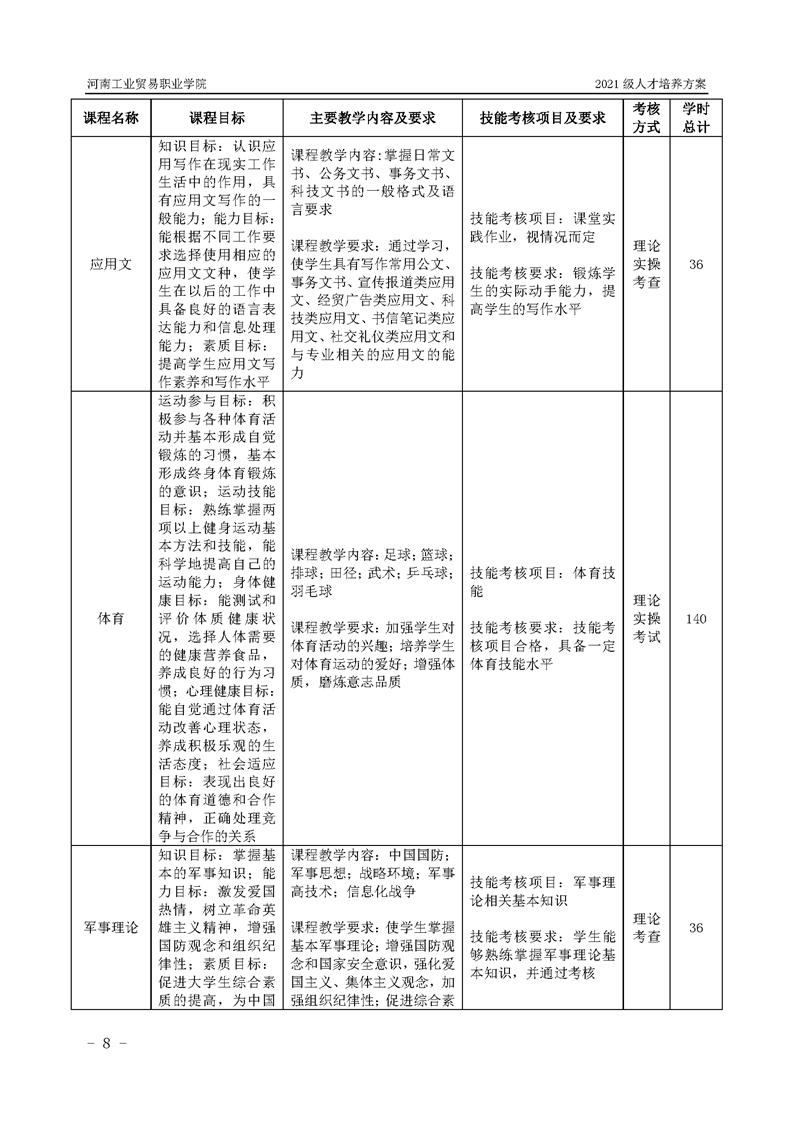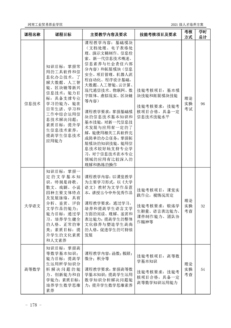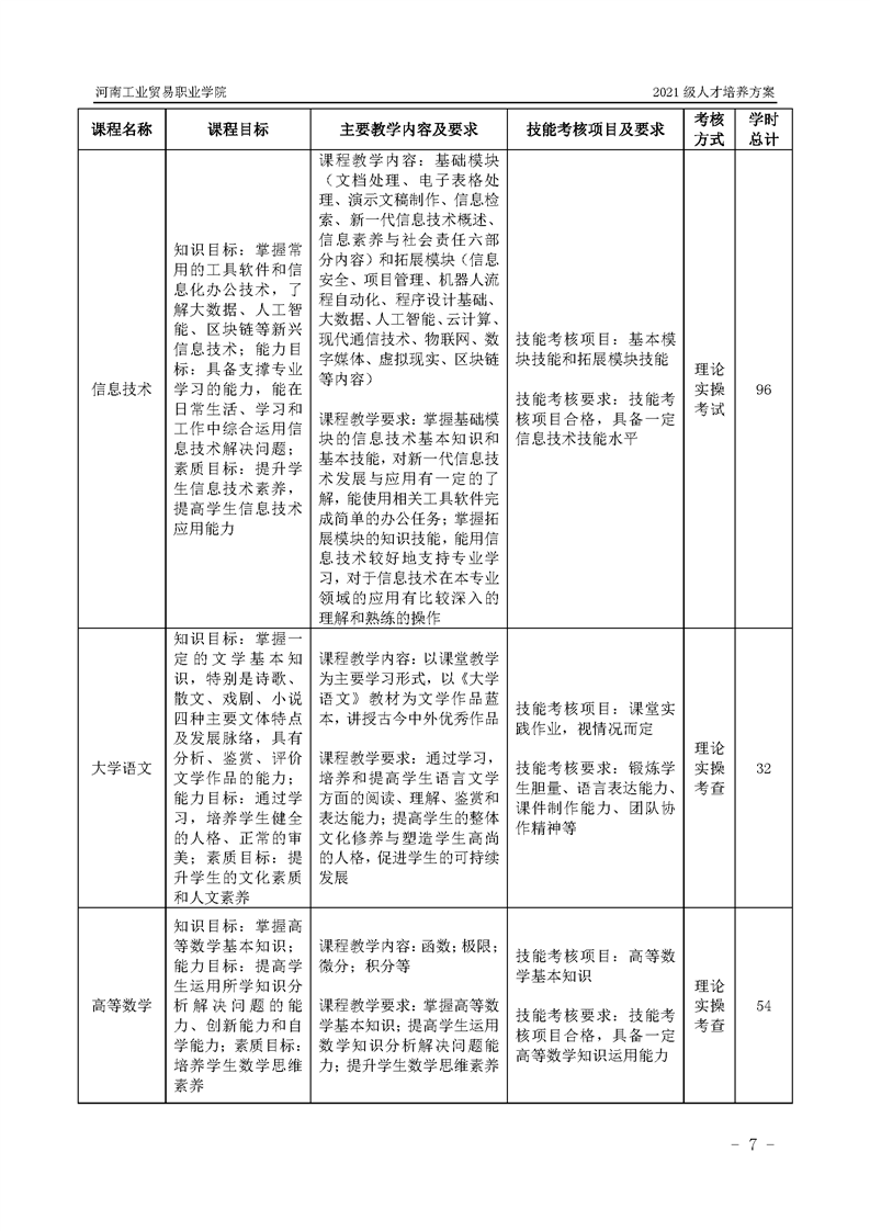 7.河南工業貿易職業學院2021級工商管理學院人才培養方案