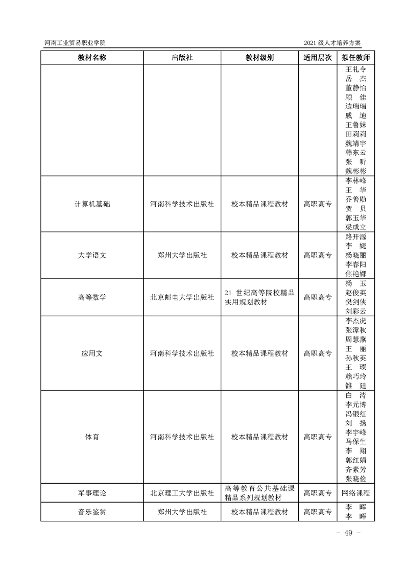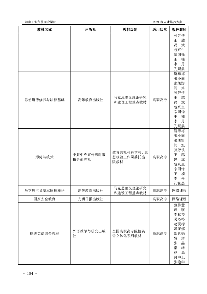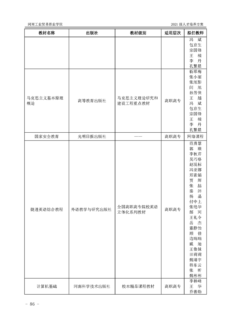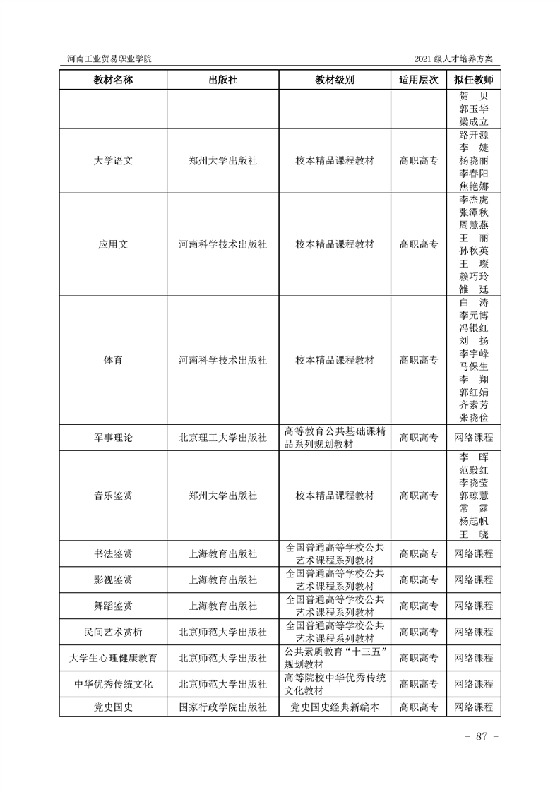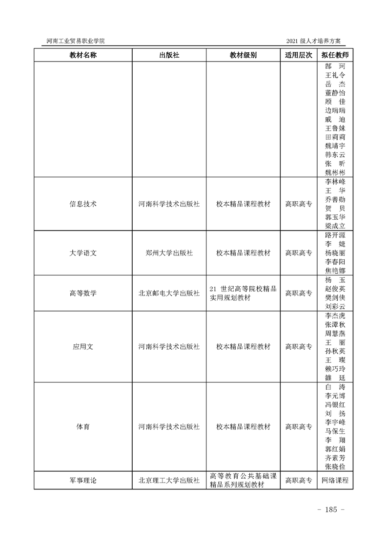 7.河南工業貿易職業學院2021級工商管理學院人才培養方案