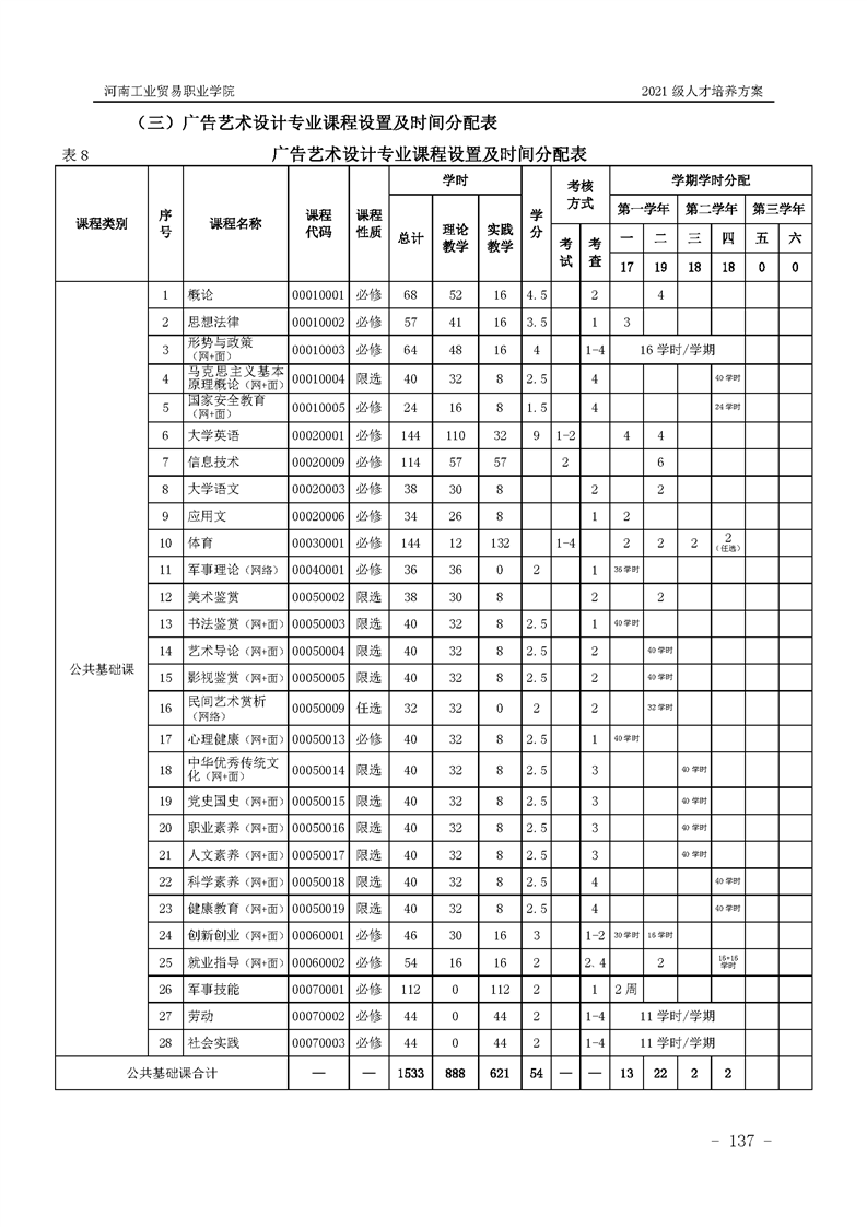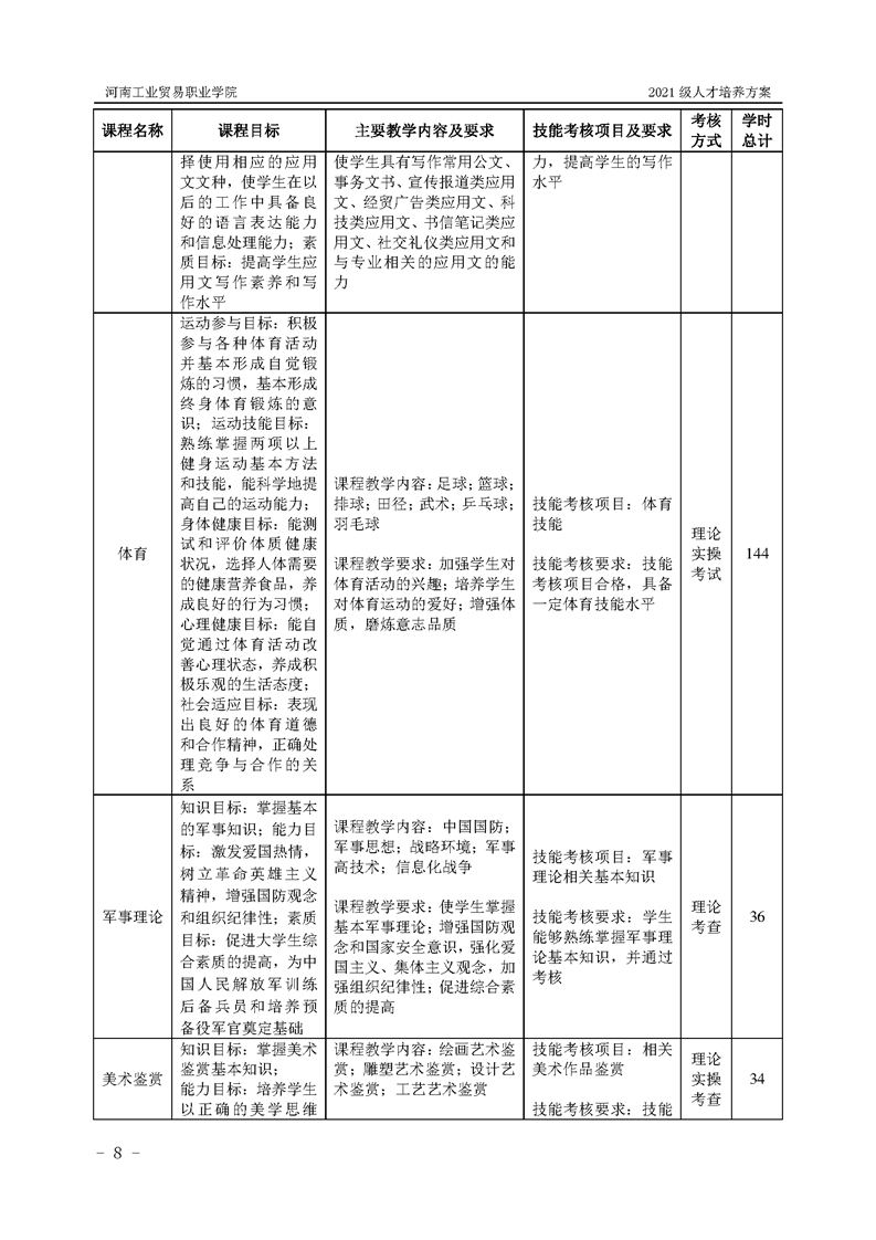 8.河南工業(yè)貿(mào)易職業(yè)學院2021級藝術(shù)設計學院人才培養(yǎng)方案