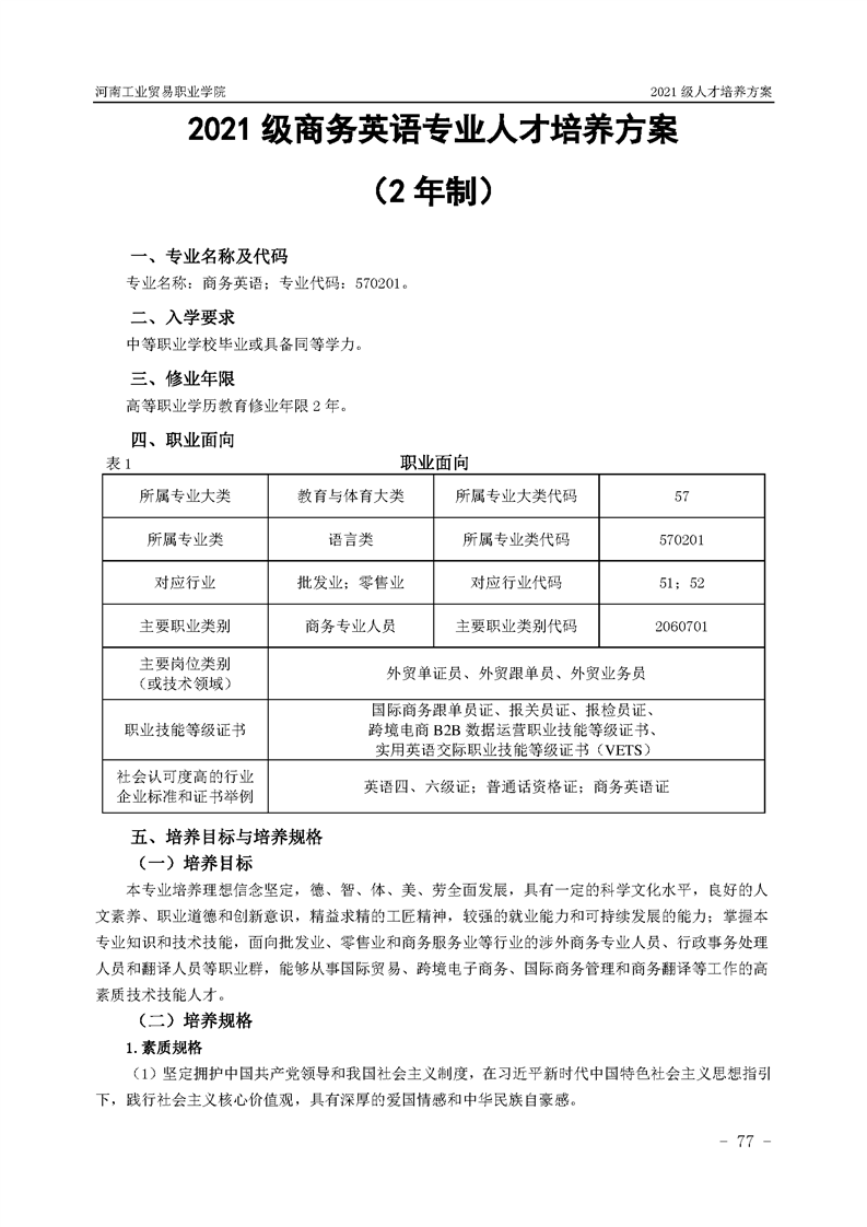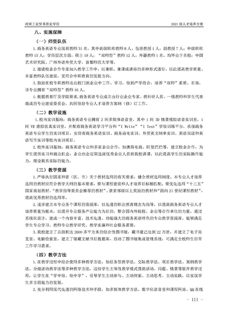 9.河南工業貿易職業學院2021級應用外語學院人才培養方案