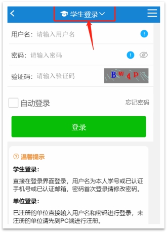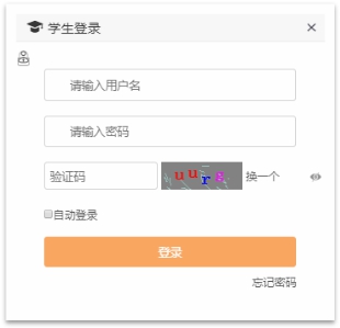 點擊右上角的學生登錄按鈕,彈出登錄窗口,輸入用戶名、密碼(默認身份證后6位)驗證碼登錄。