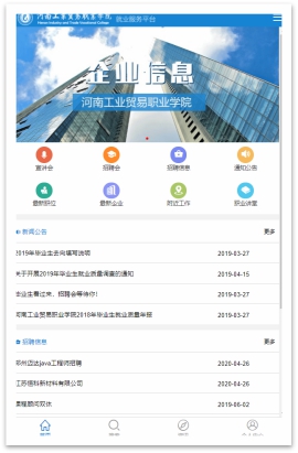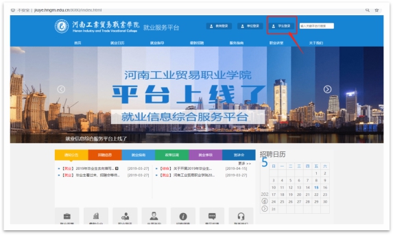 點擊下方“就業服務à就業系統”,進入“河南工業貿易職業學院就業信息綜合服務平臺”。如下圖所示: