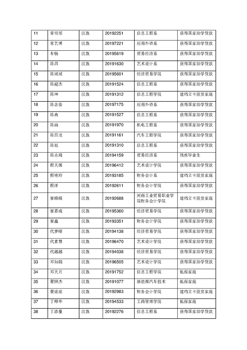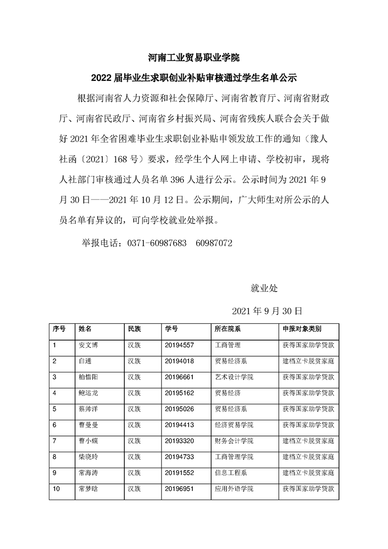 河南工業(yè)貿(mào)易職業(yè)學(xué)院2022屆畢業(yè)生求職創(chuàng)業(yè)補(bǔ)貼審核通過學(xué)生名單公示