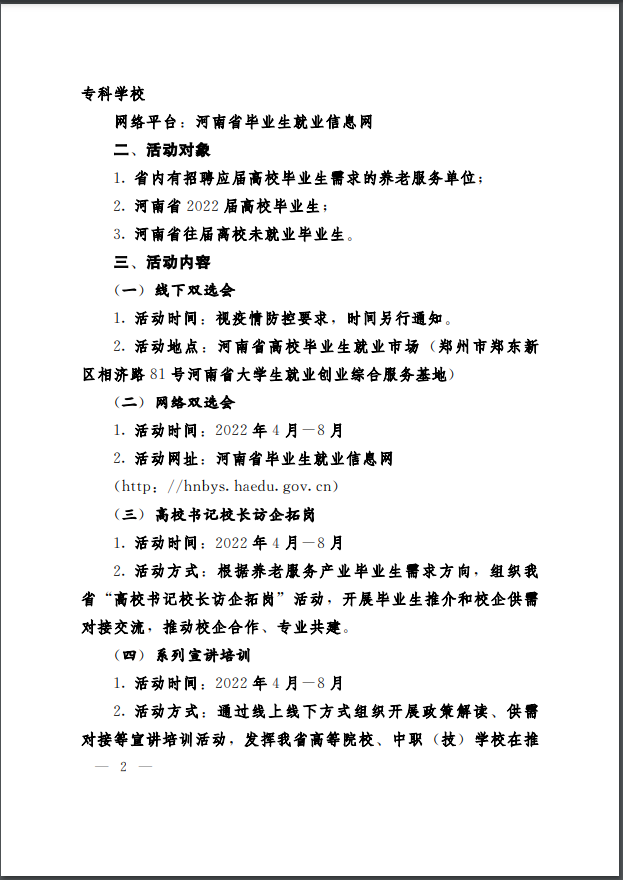 河南省民政廳 河南省教育廳 關于開展河南省2022年養老服務類畢業生供需交流活動的通知