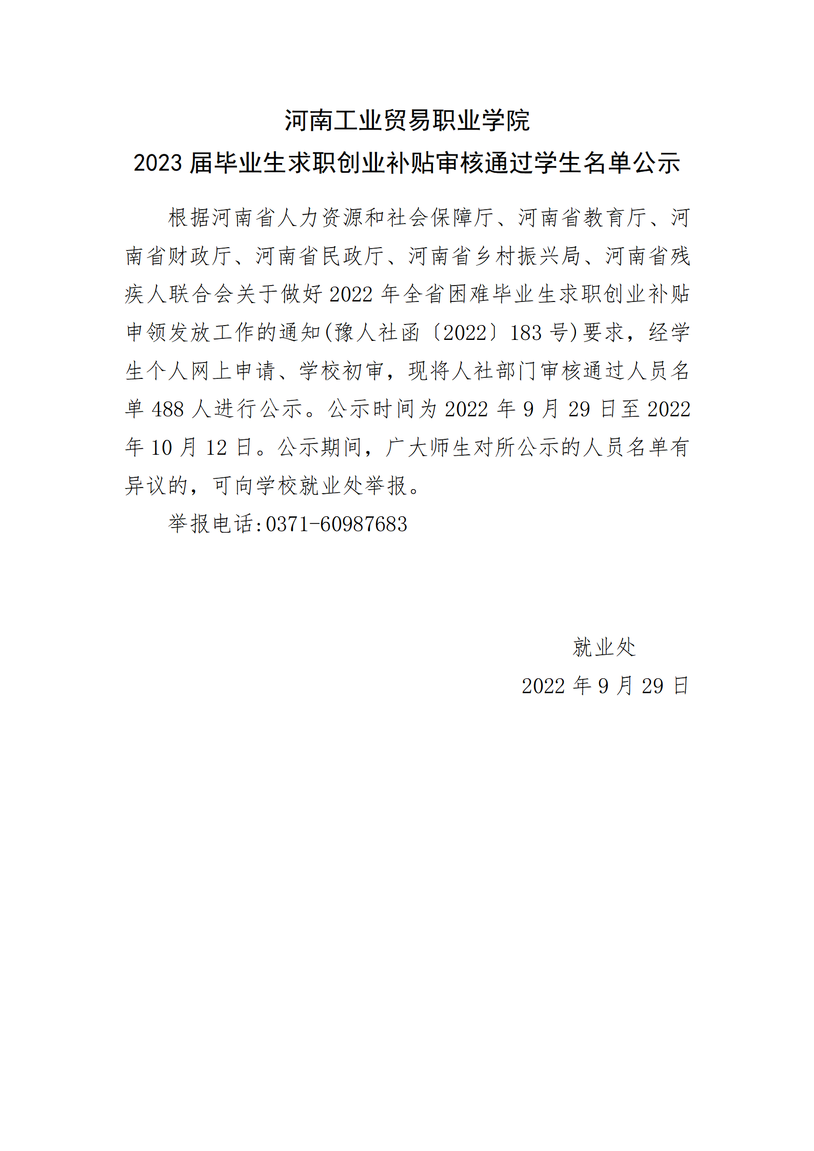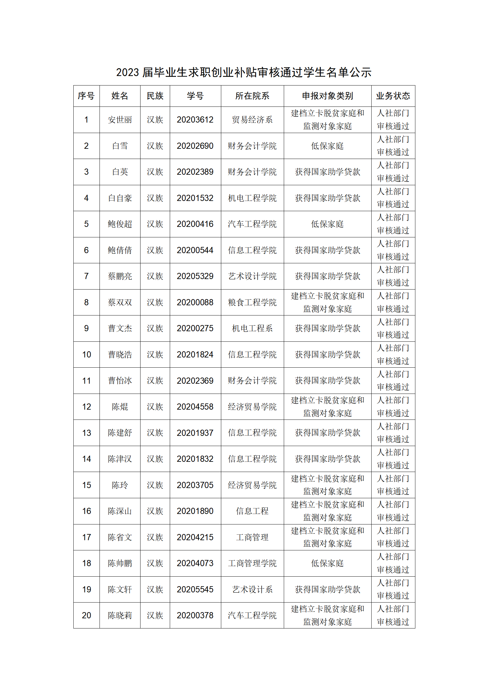 【公示】2023屆畢業生求職創業補貼審核通過學生名單公示