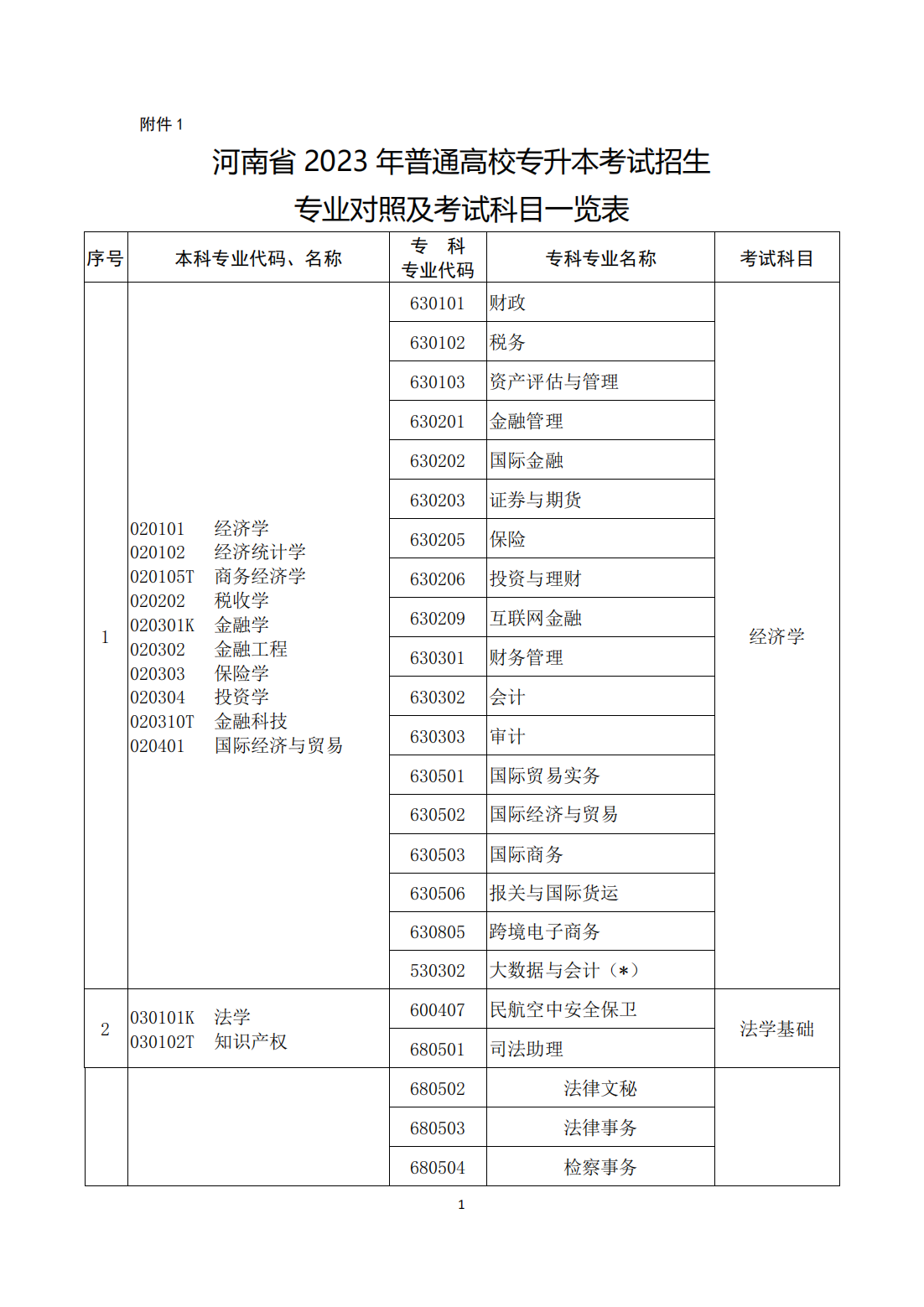 答:專科專業與本科專業及考試課程的對應可見《河南省2023年普通高校專升本考試招生專業對照及考試科目一覽表》(附件1);填報的本科專業代號見《河南省2023年普通高校專升本考試招生專業與考試科目對照表》(附件2)。
