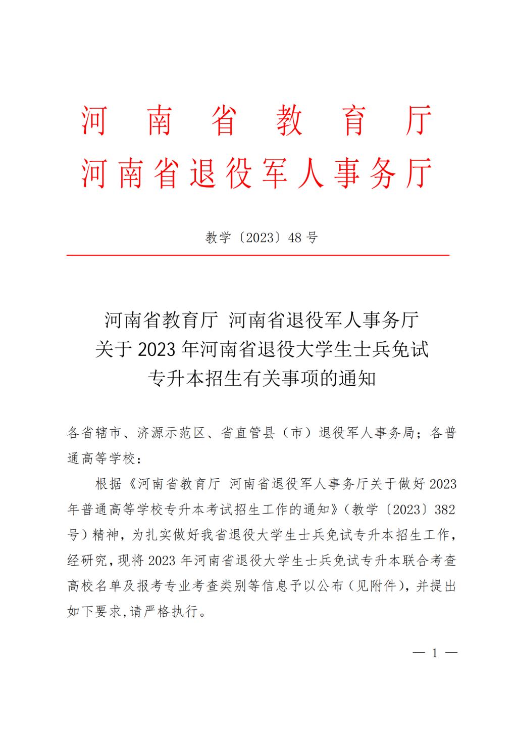 【專升本】河南省教育廳河南省退役軍人事務廳關于 2023 年河南省退役大學生士兵免試專升本招生有關事項的通知
