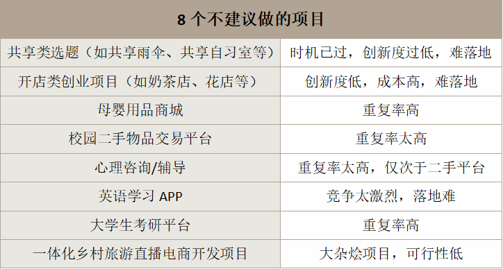 競爭性原則是指所選擇的創業項目不能有太多的競爭對手。競爭對手如果多,實力還不弱,是沒有贏得市場份額的機會的。所以,不建議做以下8個項目,這些項目過于熱門,重復率高,落地難。