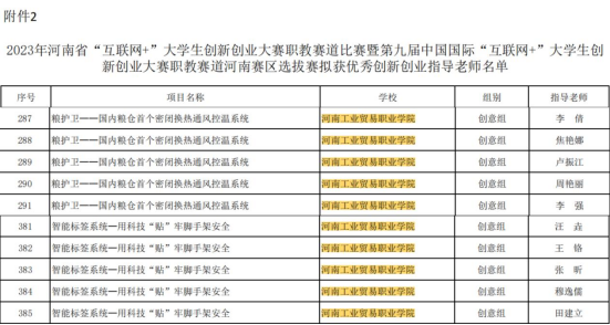 8月3日,2023年河南省“互聯網+”大學生創新創業大賽暨第九屆中國國際“互聯網+”大學生創新創業大賽職教賽道河南賽區選拔賽圓滿落幕,我校選手取得一等獎2個、二等獎5個、三等獎8個的優異成績,并再次榮獲優秀組織獎;李倩、汪垚等10名教師榮獲“優秀創新創業指導老師”榮譽稱號。