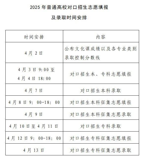 1.2025年普通高校對口招生志愿填報及錄取時間安排