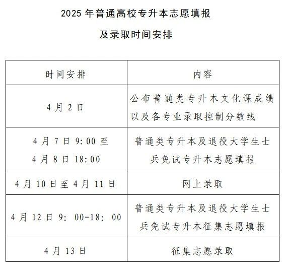 2.2025年普通高校專升本志愿填報及錄取時間安排