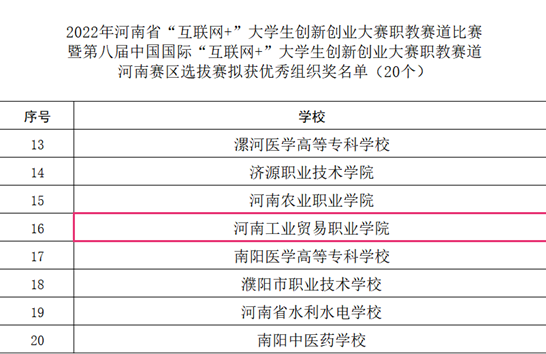 7月26日,2022年河南省“互聯網+”大學生創新創業大賽暨第八屆中國國際“互聯網+”大學生創新創業大賽河南賽區選拔賽圓滿落幕,我校選手取得1個二等獎、12個三等獎的優異成績,并首次榮獲優秀組織獎,取得此項賽事的新突破。