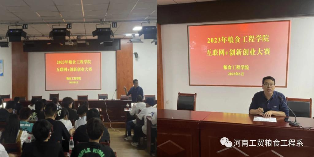為貫徹國家和我省關于推進大學生創新創業工作的有關文件精神,落實我校《關于舉辦第九屆中國國際“互聯網+”大學生創新創業大賽校賽選拔賽的通知》(豫工貿【2023】46號),普及大學生創新創業觀念,進一步引導大學生了解創新創業知識,培養創新創業意識,提高創新創業能力,鼓勵學生成長為具有創新意識、善于捕捉市場機遇、勇于開拓的創業者,糧食工程學院組織師生于2023年5月8日在行政樓招聘會議室舉辦了“糧食工程學院2023年互聯網+大學生創新創業大賽”。