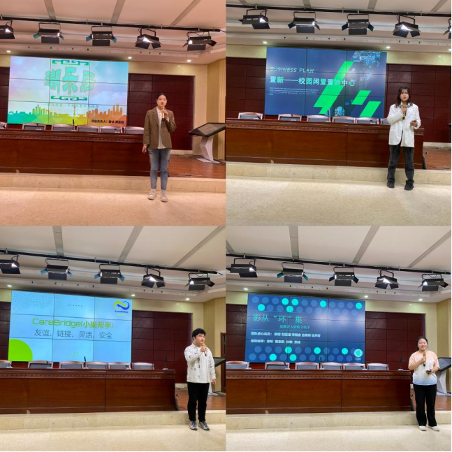 比賽現(xiàn)場,各參賽小組匯報人借助PPT、視頻等展示方式分別從項目的創(chuàng)作靈感、社會的需求性、未來的競爭力及商業(yè)模式等方面進(jìn)行了全方位的介紹,充分發(fā)揮個人知識儲備和團(tuán)隊協(xié)作水平,得到了評委老師肯定。接下來讓我們一起來欣賞部分團(tuán)隊風(fēng)采吧!