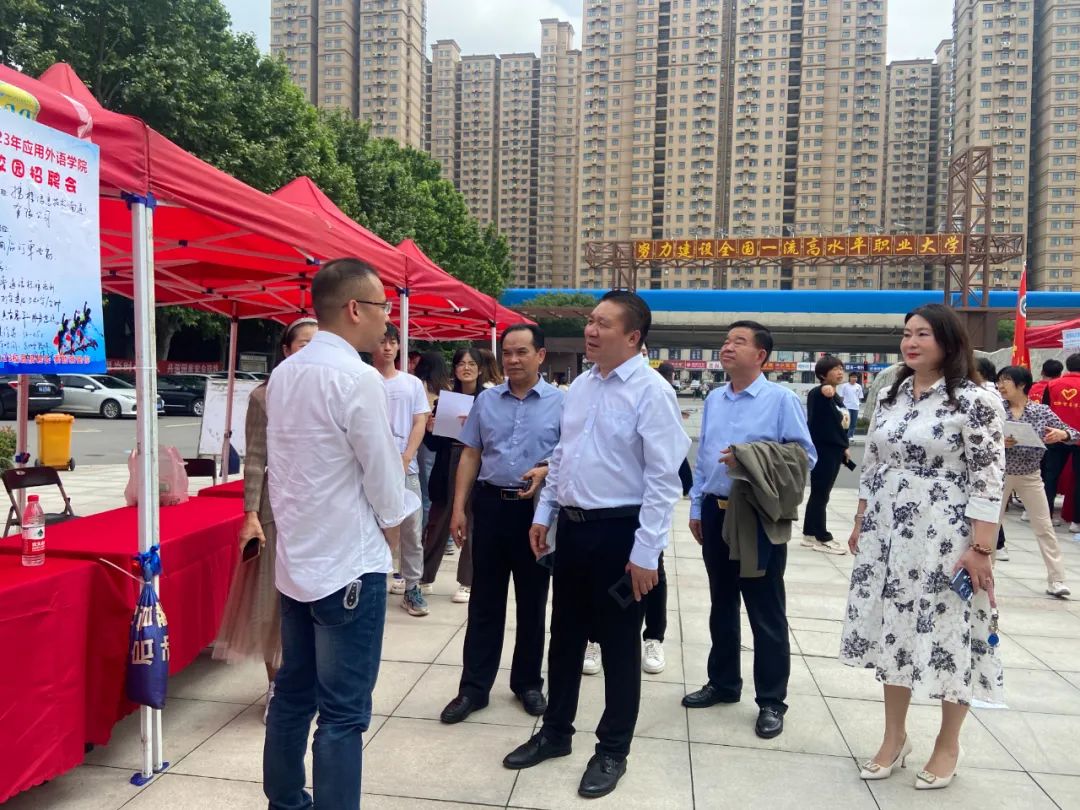 我院領導也深入雙選會現場,與參會單位及學生親切交流,傾聽用人單位意見建議,詢問關心學生意向和求職情況,鼓勵同學們要熱情自信,把握機會。