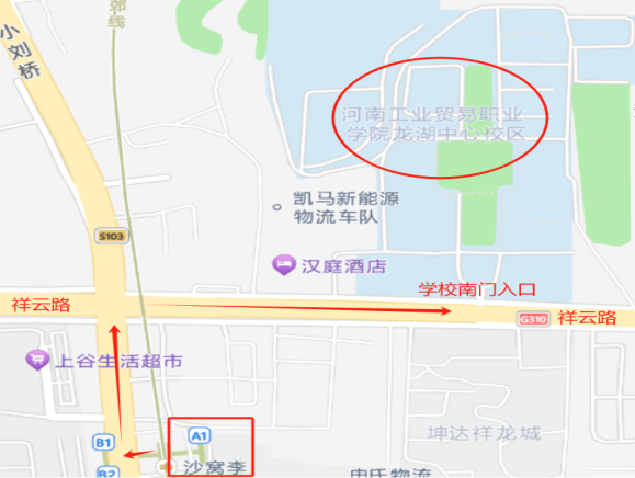 地址:河南省鄭州市新鄭市龍湖鎮祥云路76乘坐鄭州地鐵2號線到沙窩李站A1口出站,向北100米至祥云路,右轉向東200米路北即到。自駕車使用“百度地圖”手機APP導航至“河南工業貿易職業學院龍湖校區”即可。)