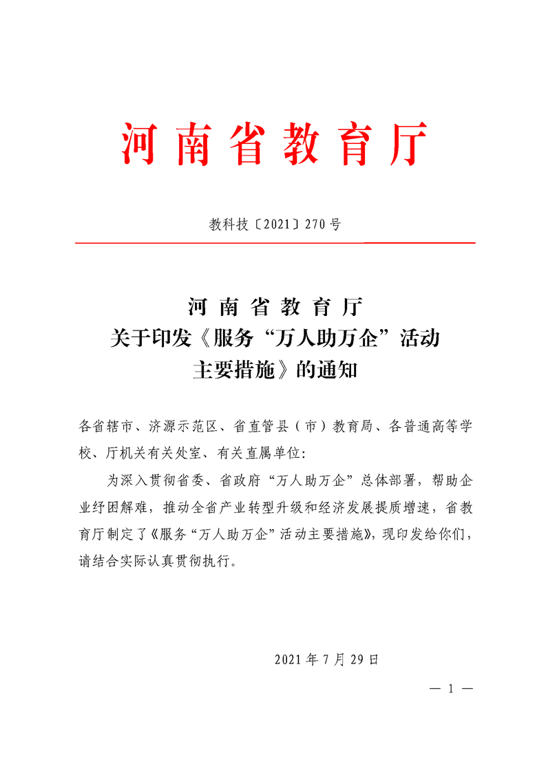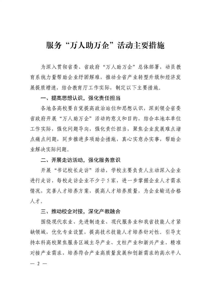 河南省教育廳關(guān)于印發(fā)《服務(wù)“萬人助萬企”活動 主要措施》的通知