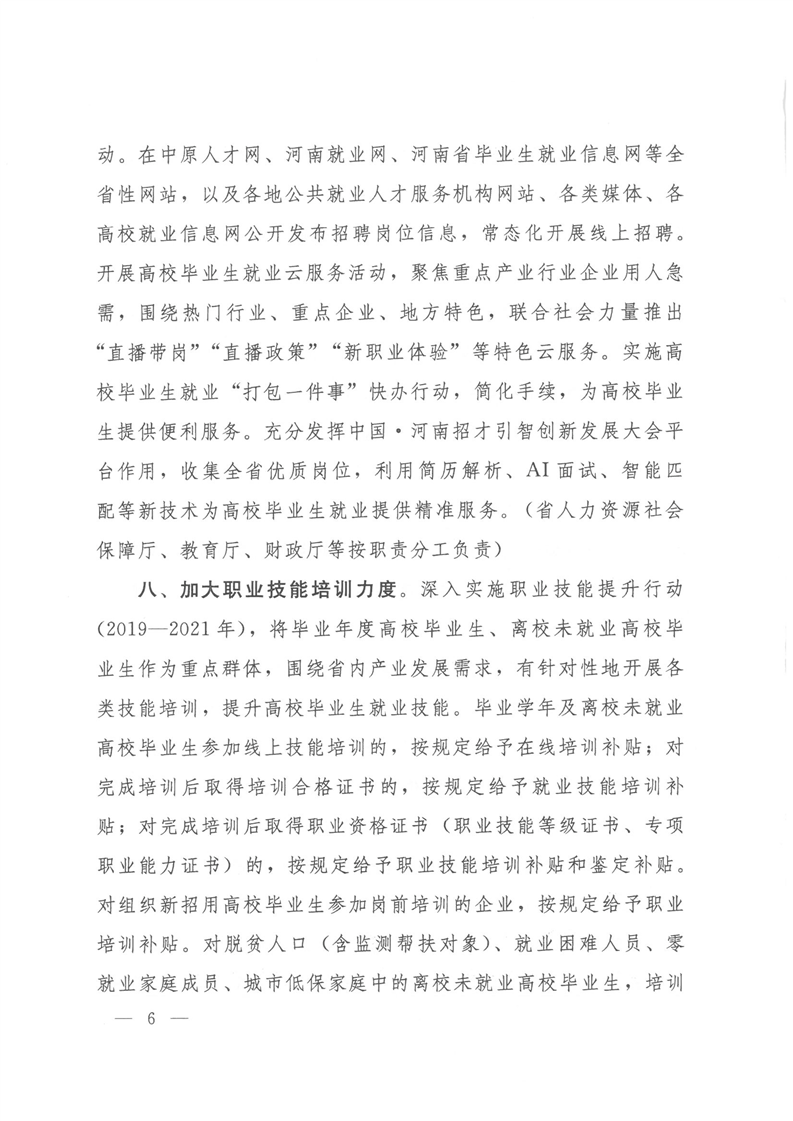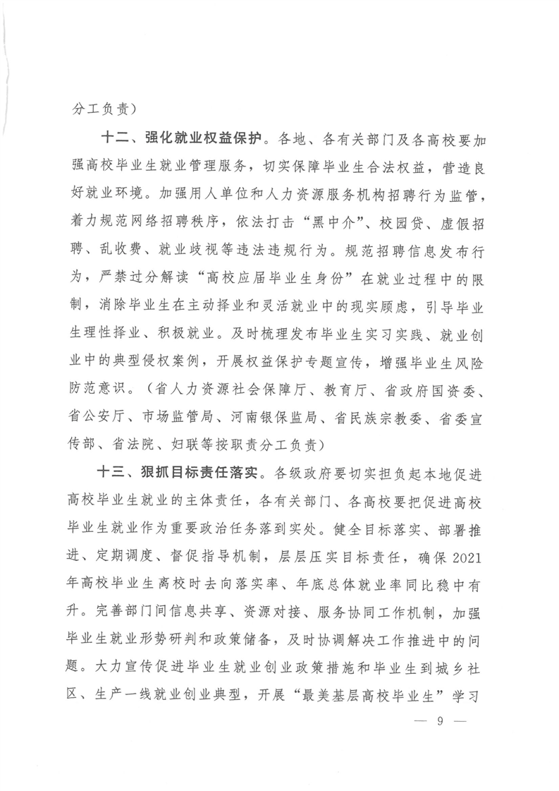河南省人民政府辦公廳關于印發河南省促進2021年高校畢業生更加充分更高質量就業若干政策措施的通知(豫政辦40號)