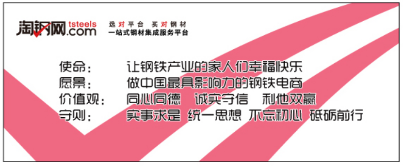 淘鋼網不僅提供優質的鋼材產品,還具備優質的現貨渠道,已整合全國各大鋼廠、現貨鋼貿商資源,目前主要的對外宣傳渠道為商城網站:https://www.tsteels.com;微信公眾賬號:淘鋼網以及淘鋼電商。