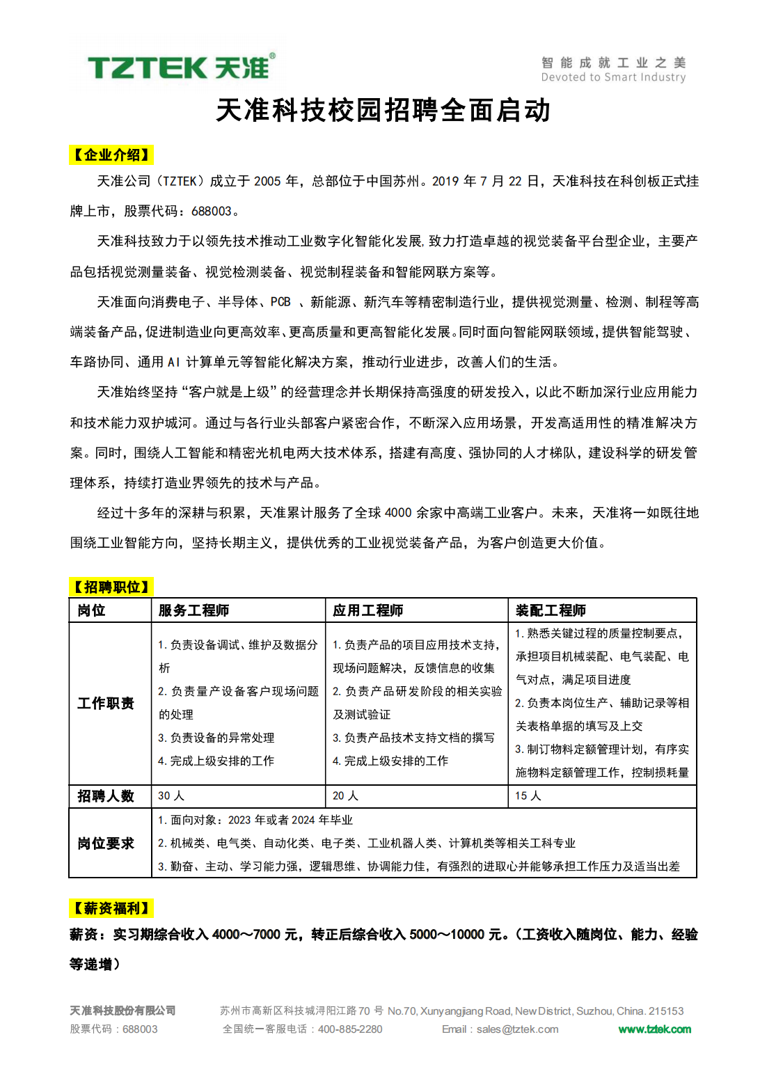 【招聘】 天準科技 誠聘!