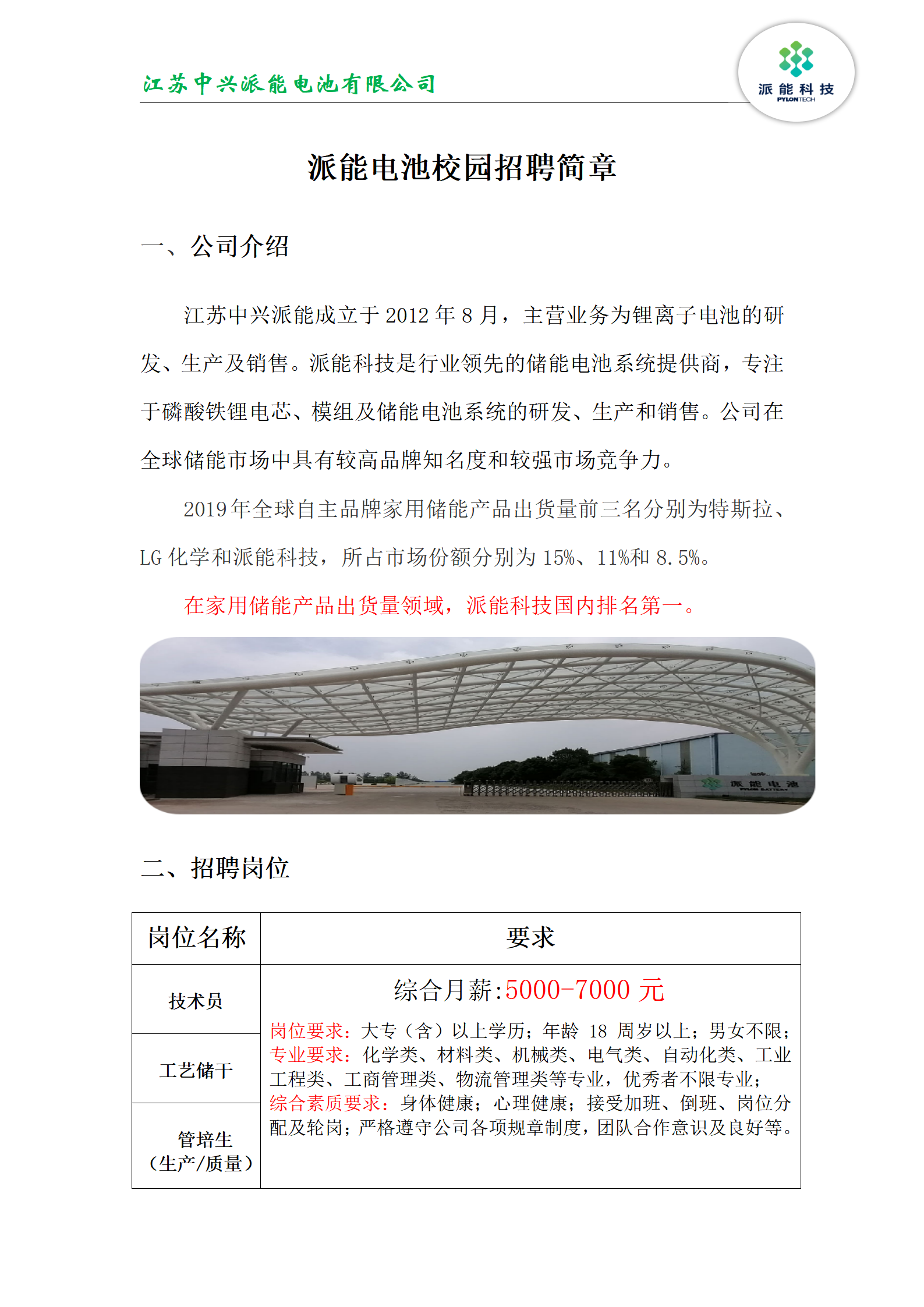 【招聘】 江蘇中興派能電池有限公司 誠聘!