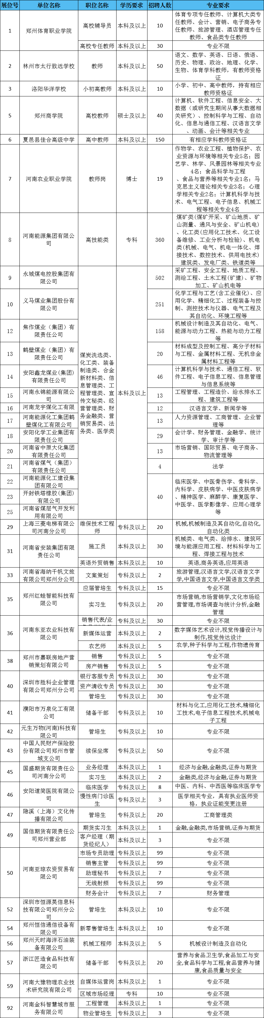 地點(diǎn):河南省高校畢業(yè)生就業(yè)市場(chǎng)(鄭州市鄭東新區(qū)相濟(jì)路81號(hào)河南省大學(xué)生就業(yè)創(chuàng)業(yè)綜合服務(wù)基地)