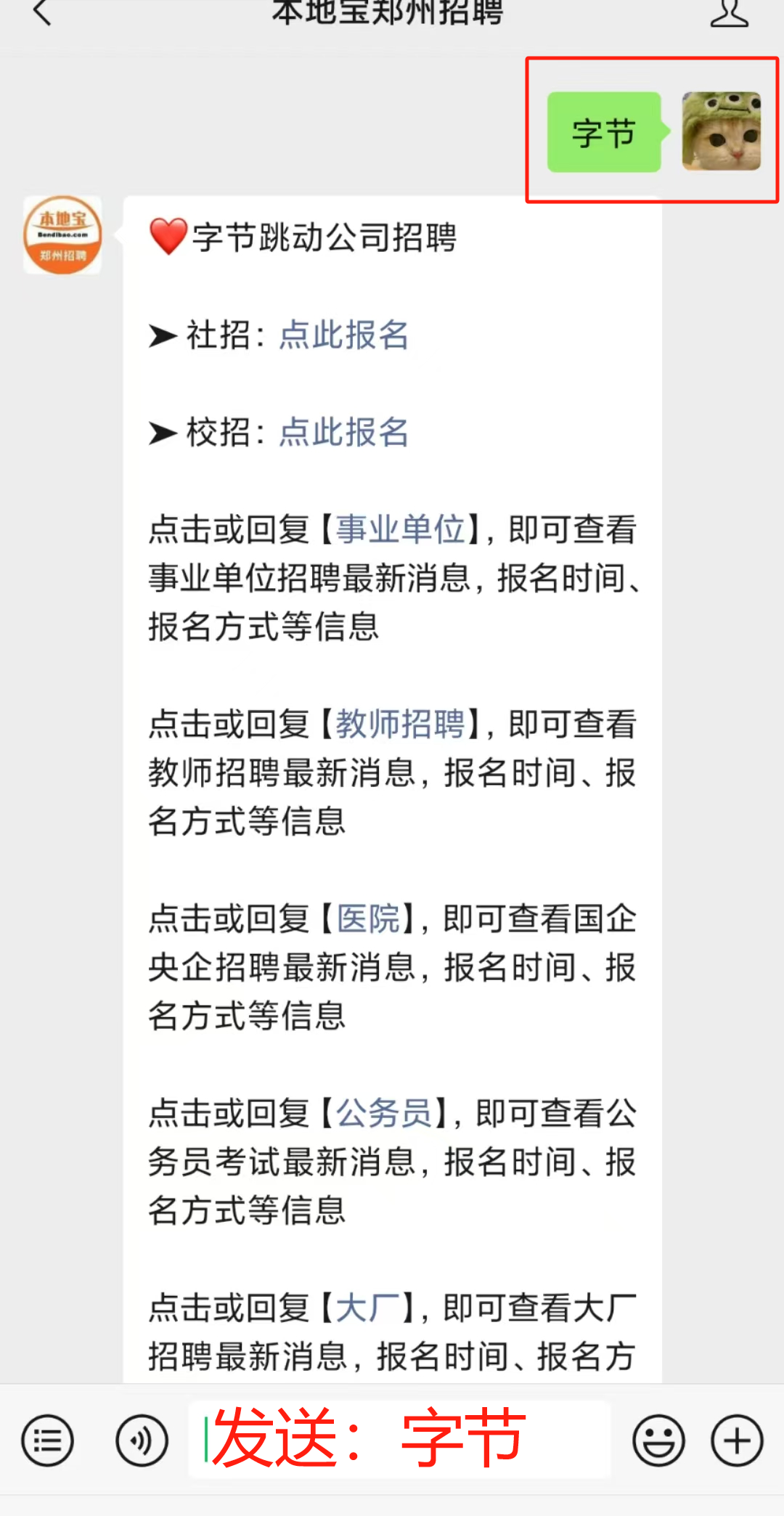 字節(jié)跳動招聘官網(wǎng),也可掃描下方二維碼關(guān)注【本地寶鄭州招聘】微信公眾號并在對話框回復(fù)【字節(jié)】即可獲取報名入口。