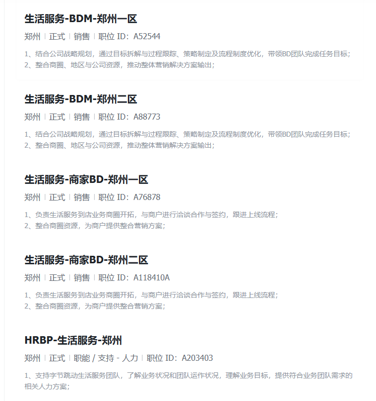 二、生活服務(wù)-商家BD-鄭州一區(qū)