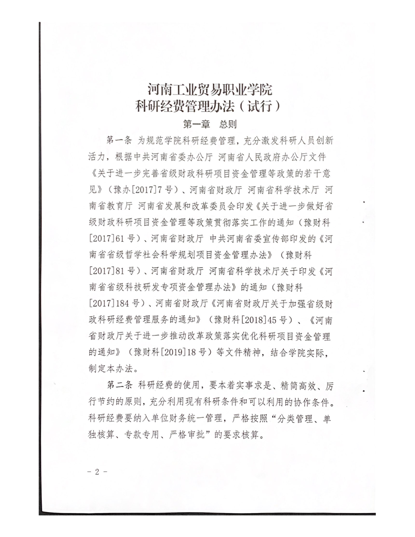 河南工業(yè)貿(mào)易職業(yè)學(xué)院關(guān)于印發(fā)《科研經(jīng)費(fèi)管理辦法(試行)》的通知