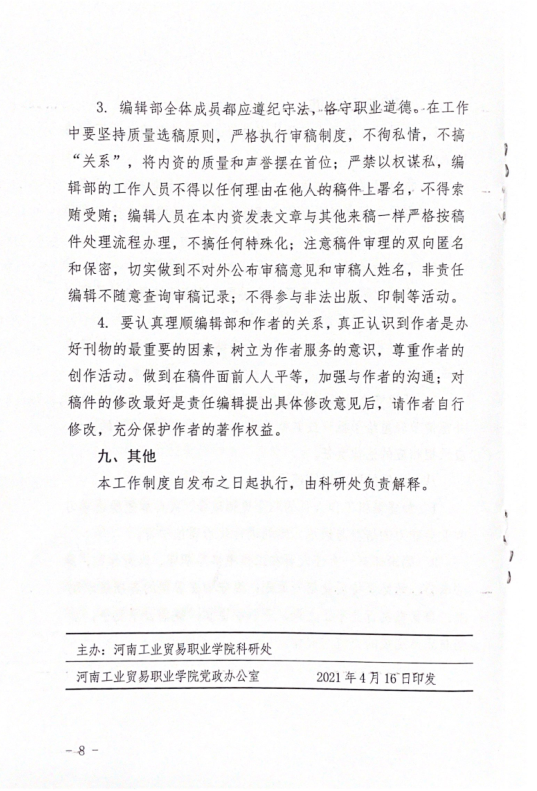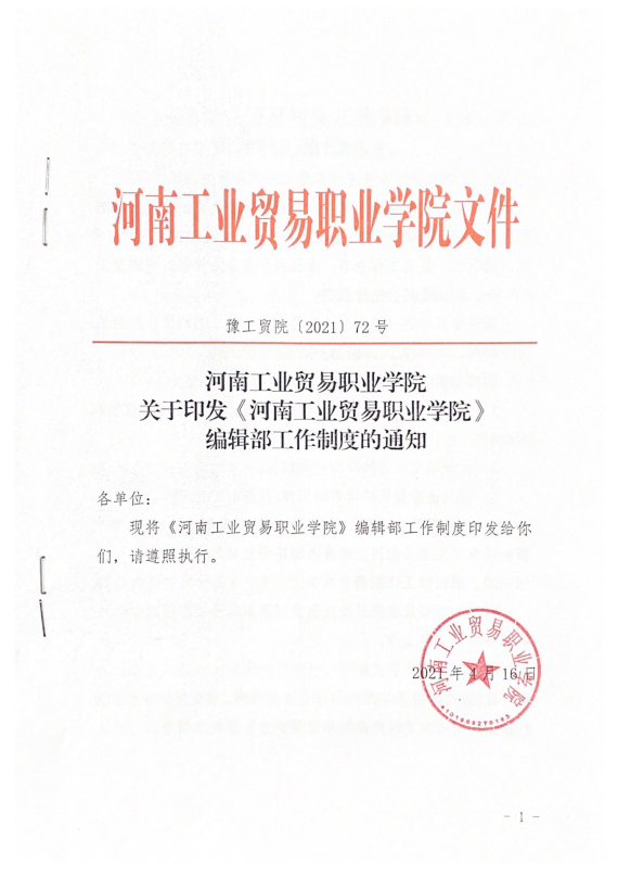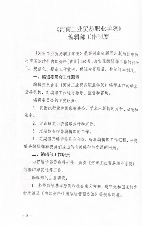 河南工業貿易職業學院關于印發《河南工業貿易職業學院》編輯部工作制度的通知