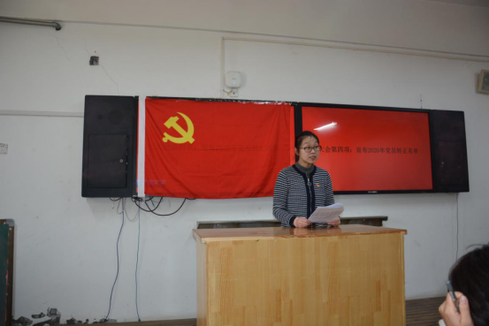 主持人糧食工程學院教職工黨支部組織委員盧寧老師宣布2020年黨員轉正名單。