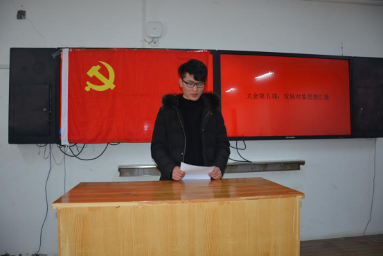 發展對象、轉正對象上臺進行思想匯報。