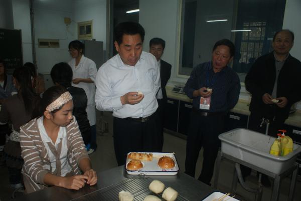 省委常委、副省長劉滿倉品嘗學生制作的面包、饅頭