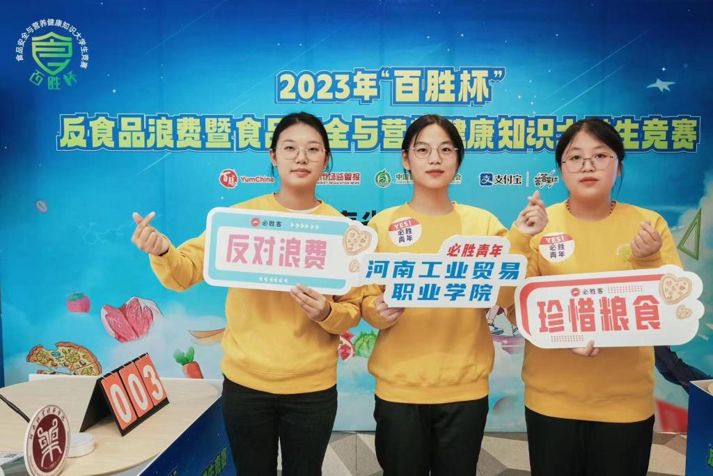 2023年11月9號,糧食工程學院學生王盼盼、劉璇、楊麗在劉艷群老師的帶領下,代表河南工業貿易職業學院參加了在鄭州大學舉行的2023年“百勝杯”反食品浪費暨食品安全與營養健康知識大學生競賽河南省分站賽。