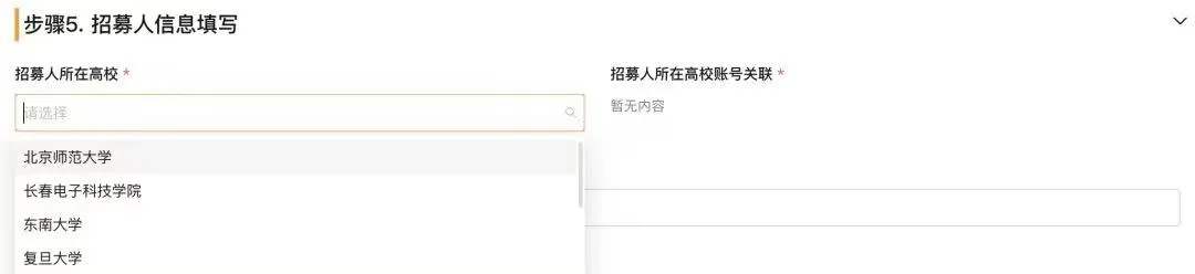 注意事項(xiàng): 在最后填寫招募人信息時,務(wù)必選擇正確學(xué)校(河南工業(yè)貿(mào)易職業(yè)學(xué)院),這樣中小學(xué)生的信息才會進(jìn)入本校管理后臺。
