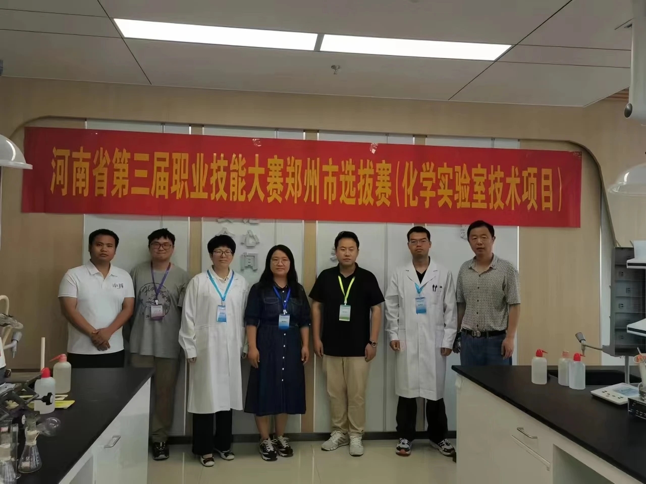 本次參賽得到了學校各級領導和專業教師的全方位大力支持。烘焙和化學實驗室技術兩個賽項均為我校首次參賽,指導教師對我院學生進行了多次培訓和篩選,組建兩支參賽隊伍備賽。范麗霞、左錦靜、劉艷群三位老師受邀參與了本次鄭州市選拔賽的裁判員工作。