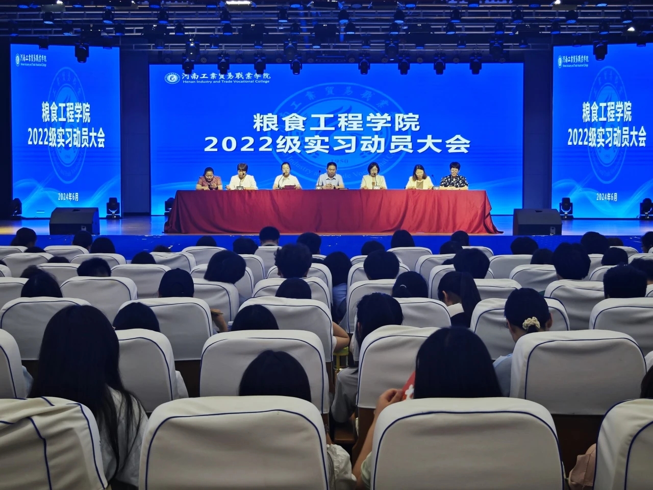 為進一步做好2022級學生的崗位實習工作,引導學生明確實習的目的和意義,指導學生做好實習的心理準備,努力提高我院學生實習工作質量,2024年6月5日上午,糧食工程學院在龍湖校區學術報告廳召開了“糧食工程學院2022級實習動員大會”。參加大會的人員有:學院領導班子成員、實習指導老師、各班輔導員、2022級在校學生。會議由學院黨總支副書記盧寧主持。