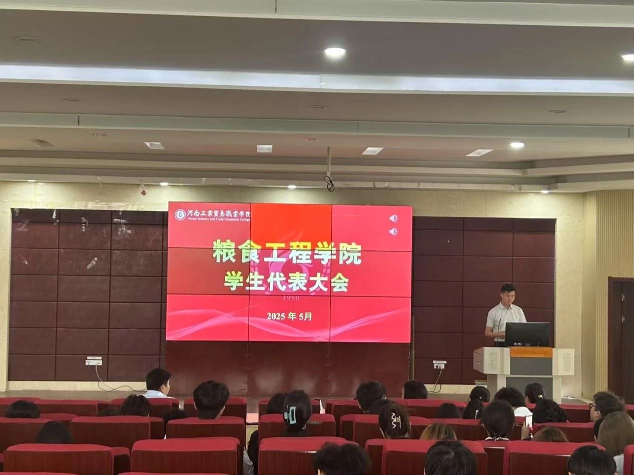 為全面貫徹落實(shí)黨的二十屆三中全會(huì)精神,深入推進(jìn)我校學(xué)生會(huì)改革,引領(lǐng)廣大學(xué)生在“四高四爭(zhēng)先”中挺膺擔(dān)當(dāng),為學(xué)校高質(zhì)量快速發(fā)展貢獻(xiàn)青春力量,根據(jù)《河南工業(yè)貿(mào)易職業(yè)學(xué)院學(xué)生會(huì)章程》,我院于5月9日中午組織糧食工程學(xué)院第七屆學(xué)生代表大會(huì)并同時(shí)完成學(xué)院三大組織機(jī)構(gòu)換屆。學(xué)院黨總支副書記盧寧、團(tuán)總支書記張震、學(xué)管老師牛芳芳、郭潔、郝小倩、黃寅楠、楊光勝及全體學(xué)生代表齊聚一堂,共謀發(fā)展新篇章。會(huì)議由楊光勝老師主持。