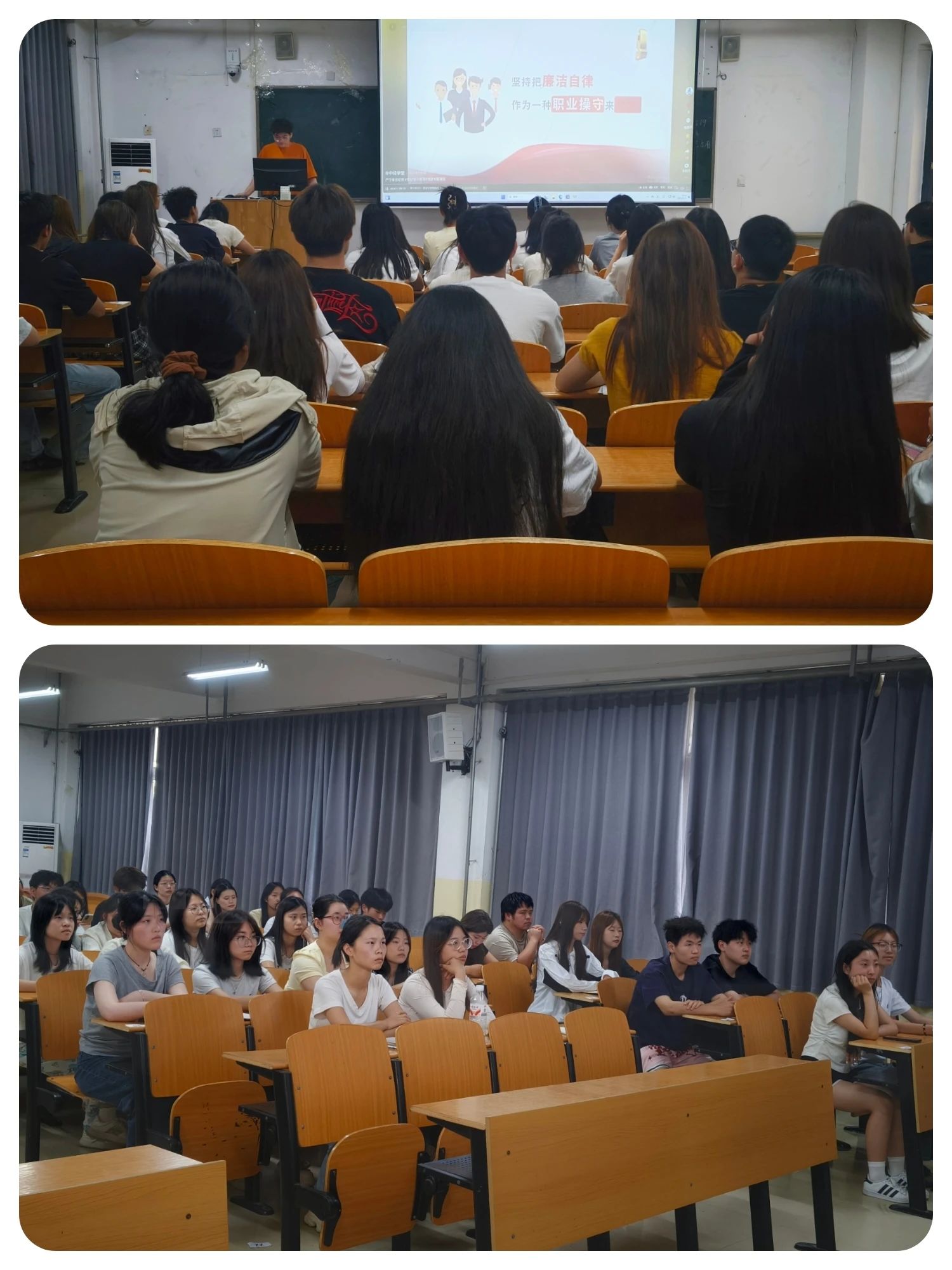 為正確樹立我院廣大青年的思想覺悟、法治觀念,我院團(tuán)總支5月19日于3301組織開展了“廉潔教育”主題觀影活動,我院秉持著以正面典型為榜樣,以反面典型為鏡鑒的原則,精心挑選了具有教育意義的影片。影片以真實(shí)案例的影像化呈現(xiàn),直觀闡釋紀(jì)法的權(quán)威性與違紀(jì)違法的嚴(yán)重后果。觀影結(jié)束后,同學(xué)們紛紛表示,要以正面典型為標(biāo)桿,時刻提醒自己保持自律;以反面典型為警鐘,堅(jiān)決杜絕違紀(jì)違法行為,全力營造風(fēng)清氣正、積極向上的校園氛圍,為今后的學(xué)習(xí)生活和未來的創(chuàng)新創(chuàng)業(yè)奠定堅(jiān)實(shí)的紀(jì)法基礎(chǔ)。