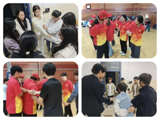 隨后的“心有千千結”環節將活動推向高潮。同學們手牽手、肩并肩,在復雜的“人結”中通過有效的溝通、耐心的嘗試和緊密的協作,共同努力將“結”解開,恢復成完整的圓圈。這個環節不僅考驗了團隊的智慧,更讓同學們深刻體會到:只要心往一處想、勁往一處使,任何看似復雜的“結”都能找到解決之道。