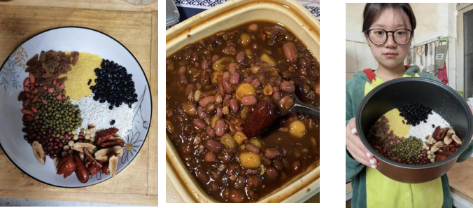 在“傳統文化教育月”的臘八文化節中,25儲運103史紅顏同學以傳統臘八粥為載體,親身體驗了從選材到熬煮的全過程。仔細挑選五谷雜糧,耐心浸泡、慢火熬煮,在熱氣氤氳中共同守候一鍋粥的香氣漸濃。最終熬成的臘八粥,米豆交融、香甜軟糯,每一口都承載著勞動的喜悅與傳統的溫度。通過親手制作,讓她深刻理解了臘八粥背后“五谷豐登、闔家團圓”的文化寓意,也在味覺與情感的雙重體驗中,完成了一次與傳統民俗的生動對話。
