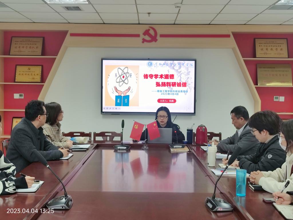 活動最后,張慶霞副院長及糧食工程學院全體教師對錢處長及科研處的各位老師表示衷心的感謝,并表示在今后的科學研究過程中,恪守學術(shù)道德,杜絕學術(shù)不端,踏實進取,力爭取得更好成績!