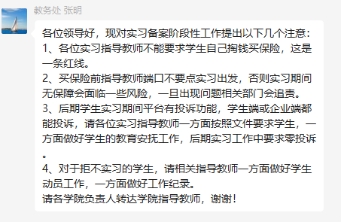 每個實習指導老師要求所指導的老師傳給你所購買的電子保險單核實保單被保險人與學生名單相符,審核后先保留,以后統一交教務處審核