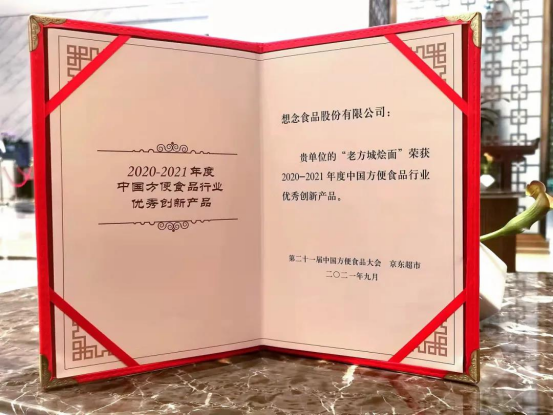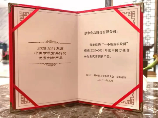 此次大會,想念食品攜旗下特色美食系列燴面、多谷物雜糧系列掛面等明星產品驚艷亮相。其中,一小燴系列之魚羊燴面及老方城燴面在眾多參評產品中脫穎而出,榮獲2020-2021年度中國方便食品行業優秀創新產品。