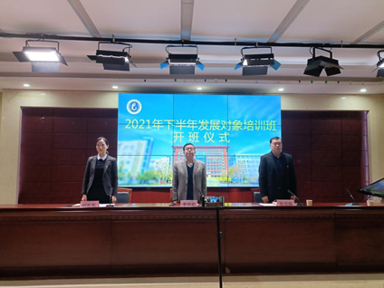 在歡慶中國共產黨百年華誕之際,為錘煉黨性修養,堅定理想信念,11月17日-19日,我校以“學習百年黨史,汲取奮進力量”為主題舉辦了2021年下半年黨員發展對象培訓班。組織部部長李明前、團委書記張現振出席開班儀式,192名黨員發展對象以線上方式參加了開班儀式及培訓。開班儀式在雄壯的國歌聲中開始,儀式由組織部副部長胡彬彬主持。